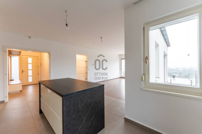 Kinek ajánlomEzt az ingatlant azoknak ajánlom, akik az otthont nem pusztán élettérnek, hanem harmóniát adó helynek tekintik.Akik szeretik, ha reggel a napfény tölti meg a szobákat, ha este a városi fényekkel a horizonton pihennek meg, és fontos számukra a nyugalom, a panoráma és a minőség.Ideális választás családoknak, pároknak, vagy akár elfoglalt szakembereknek, akik egy rendezett, zöldövezeti környezetben szeretnének élni — kompromisszumok nélkül.ElhelyezkedésAz ingatlan Budaörs egyik legkedveltebb, dombos részén található, zöldövezeti, mégis kiválóan megközelíthető környezetben.A városközpont, valamint a legfontosabb bevásárlási lehetőségek – IKEA, Auchan, Tesco, Decathlon, Rossmann, gyógyszertárak – mind néhány perces autóútra elérhetők.Több iskola, óvoda és sportlétesítmény is a közelben található, a tömegközlekedés pedig kényelmesen használható: helyi buszjáratok biztosítanak kapcsolatot a budaörsi központ és Budapest irányába.Az M1–M7 autópályák csomópontja mindössze pár percre található.A környék hangulataA budaörsi dombvidék egyik legcsendesebb és legápoltabb része.A környék atmoszférája nyugalmat és természetközelséget sugároz, miközben modern, igényes családi házak és új építésű társasházak veszik körül.A környék ideális választás azoknak, akik szeretik a reggeli sétákat, a friss levegőt, a csendes esték békéjét, és akik számára fontos, hogy a panoráma valóban elvehetetlen maradjon.Az ingatlanrólA lakás egy kétlakásos társasház felső szintjén helyezkedik el – így teljes intimitást és privát életteret biztosít.A ház elhelyezkedéséből adódóan 180 fokos, körpanorámás kilátás tárul elénk, amely a nappaliból, a teraszról és a kertből is élvezhető.A lakás különlegessége a 33 m²-es, üvegkorlattal ellátott panorámaterasz, ahol minden napszakban más arcát mutatja a kilátás.A tágas, egybenyitott nappali–étkező–konyha térben hatalmas üvegfelületek engedik be a fényt, így a lakás egész nap napfényben úszik.A három hálószoba közül a legnagyobb közvetlen kertkapcsolattal rendelkezik.A házhoz privát úton lehet feljutni, ami biztonságot és nyugalmat ad, a környezet pedig rendezett és igényes.Műszaki felszereltségÉpítés éve: 2018Fa nyílászárók, prémium hőszigetelésselHőszivattyús hűtés–fűtés rendszer, alacsony fenntartási költségekkelBeépített konyhabútor és beépített gardróbszekrényekFrissen tisztított, üres állapot, azonnal költözhetőModern, igényes kivitelezés, időtálló anyaghasználatParkolás és megközelítésA lakáshoz tartozik egy 30 m²-es, zárható, privát garázs, amely kizárólag az ingatlan tulajdonosának használatában van.Ezen felül a telken belül további 2–3 felszíni beállóhely is rendelkezésre áll.A ház privát úton közelíthető meg, ami exkluzivitást és biztonságot nyújt a lakók számára.Ez az otthon egyszerre sugároz letisztultságot, harmóniát és eleganciát – egy hely, ahol minden részlet a kényelmet és a nyugalmat szolgálja.Ha felkeltette az érdeklődését, keressen bizalommal, örömmel mutatom be személyesen is ezt a különleges ingatlant.