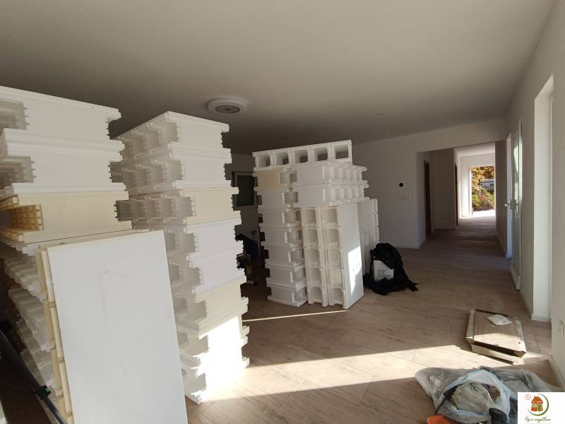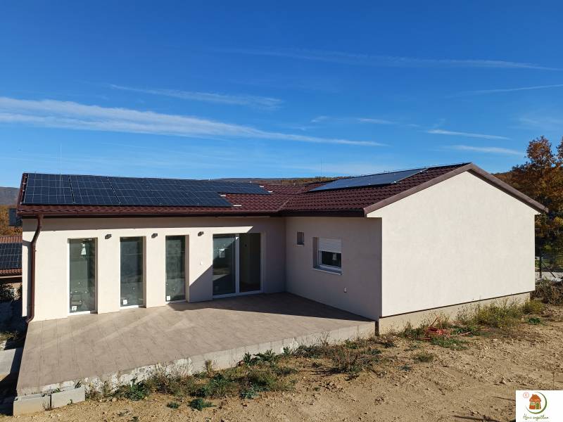 CSODÁS HÁZ CSODÁS KÖRNYEZETBENA+++ ENERGETIKA, SZINTE PASSZÍVHÁZPRÉMIUM ANYAGOK, MINŐSÉGI KIVITELEZÉSA Somlyóvölgyi lakópark egyik legszebb panorámájú és egyik legkedvezőbb elhelyezkedésű bekerített telkén új, prémium építőanyagokból épült, 3 szobás, 2 fürdőszobás, nagyteraszos, napelemes ház eladó medence kialakítással. A telek mérete 23 x 40 m. A ház bruttó alapterülete 120 nm, a nettó 103 nm, plusz 38 nm terasz. A tágas ház beosztása: - előszoba-közlekedő: 13,7m²- szoba: 16,6m²- szoba: 10,9m²- szoba: 9,9m²- nappali-étkező-konyha: 38m² - ebből a konyhai rész: 7,5m²- zuhanyzós, WC-s fürdőszoba: 2,6m²- nagy fürdőszoba: 11,5m²- terasz: 38m²A lakótér a terasz beépítésével akár 140m²-re növelhető.Az ingatlan vezetékes víz, villany és csatorna közművekkel rendelkezik. Alapozás: lemezalap terasz és ház együtt, benne 20 cm EPS lépésálló szigeteléssel - a terasz alatt is van szigetelés. A ház lemezalap 20 cm EPS 100 lépésálló szigeteléssel lett összesen 30 cm vastagságban kialakítva.Falszerkezet: kerámia anyagból, a külső falakon 3 cm kőzetgyapot szigeteléssel. Korszerű liopor technológia: hőálló, vízálló, fagyálló, penészálló, tartós, kiváló hangszigetelő és környezetkímélő falak. A külső falak 15 cm, a belső falak 10 cm vastagok. A falakra 20 cm grafitos szigetelés került, így összesen 23 cm a külső szigetelés. Tető: szeglemezes faszerkezet. Az épület a leghatékonyabb energetikai besorolású: A+++, közel passzívház jellegű energiahatékonysággal rendelkezik.Kömmerling 5-kamrás, 3-rétegű ablakok. Biztonsági bejárati ajtó és terasz tolóajtó. A tetőn 10,2kW napelemrendszer, amely 12kW-ig bővíthető. Wifi vezérlésű digitális elektromos padlófűtés. 100l-es Aquastic AQ Flat Wifi 100 digitális vezérlésű elektromos vízmelegítő, luxus zuhanypanel. Az ár tartalmazza az ablakok alumínium redőnyös felszereltségét, a nagyszobában és a nappaliban elhelyezett Gree hűtő-fűtő klímaberendezéseket, a korszerű lámpatesteket a lakótérben és a teraszon, a szaunaház elhelyezéséhez a kiépített vezetékezést. Szintén tartalmazza az ár a kerti medence előkészítését és a medence minden berendezését, tartozékát. A kertben két gépkocsi számára van beállóhely. Az Óbudától 24 km-re lévő Pilisjászfalu az agglomeráció egyik legszebb fekvésű települése. A pilisjászfalui vasútállomás az ingatlantól csak 6 perc gépkocsival. CSALÁDOKNAK ÉS BEFEKTETÉSNEK EGYARÁNT KIVÁLÓ LEHETŐSÉG!AZ INGATLAN MEGFELEL AZ OTTHON START ÉS OTTHON PLUSZ FELTÉTELEINEKAZ INGATLAN EREDETI ÁRA 165M. VEGYE MEG MOST OTTHON STARTTAL 148M-ÉRT!Van kulcsom, hívjon és mutatom!HEXI INGATLAN - OTTHON A PILISBENHajas Gabriella