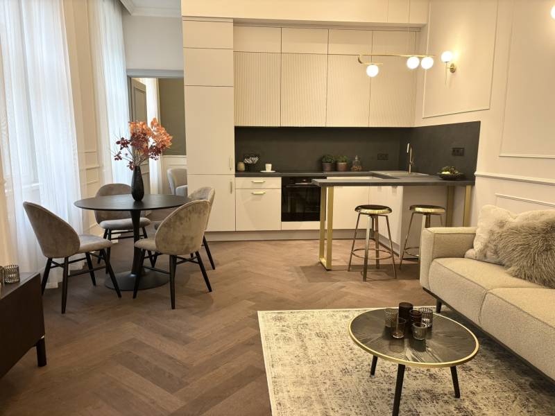 Az Andrássy út eleganciáját és a modern luxus kényelmét ötvözi ez a páratlan ingatlan, amely egy gyönyörűen felújított, reprezentatív házban található — elegáns panoráma üveg lifttel.Főbb jellemzők- 62 m² – tökéletesen átgondolt alaprajz- 2 hálószoba, 2 fürdőszoba- 7 ablak, így a lakás minden helyisége világos, napfényes és otthonos- Udvari fekvés ellenére teljesen privát, mivel az ablakok előtt nincs közlekedőfolyosó- Prémium minőségű, teljes körű felújításA lakás tégláig visszabontva újult meg, kimagasló műszaki tartalommal és minőségi anyagokkal:- Hansgrohe szaniterek- Rejtett tapétaajtók, tömörfa, festett belső ajtók- Olasz márványhatású greslapok- Exkluzív Budapest-halszálka furnér parketta- Új kondenzációs kazán, bélelt kémény- Belsőépítész által tervezett enteriőrA koncepció a századfordulós bérpaloták eleganciáját ötvözi a kortárs design letisztultságával – így az enteriőr egyszerre időtlen és modern.ElhelyezkedésAz Oktogon mindössze 1 perc sétára, a város pezsgő élete és a tömegközlekedés pedig karnyújtásnyira található.Ez az otthon tökéletes választás azoknak, akik a belvárosi életstílust kompromisszumok nélkül, luxusminőségben szeretnék élvezni.Ne maradjon le erről a különleges lehetőségről – hívjon most, és tekintse meg személyesen ezt az egyedülálló lakást!