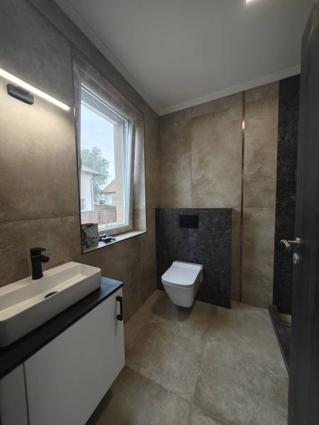Vecsésen PRÉMIUM kivitelezésű ikerház eladó• újépítésű • nettó 145.38 m2 + 6.25 m2 erkély + 30 m2 terasz • hatalmas amerikai konyhás nappali • LED hangulat világítás• öt hálószoba (egy a földszinten, négy az emeleten)• két fürdőszoba (zuhanyzós és kádas)• fűtése: hőszivattyú, padlófűtés az egész házban• színezett hűtő-fűtő klímák • szennyes ledobó az emeletről• minőségi burkolatok • térkövezett járdák (még kialakítás alatt)• riasztó• telek: 332 m2Kivitelező saját részre épített, de végül nem beköltözött háza eladó tényleg prémium minőségben. Tömegközlekedés 5 perc gyalog 576, 578, vonat: 15-20 perc. Szinte azonnal költözhető!