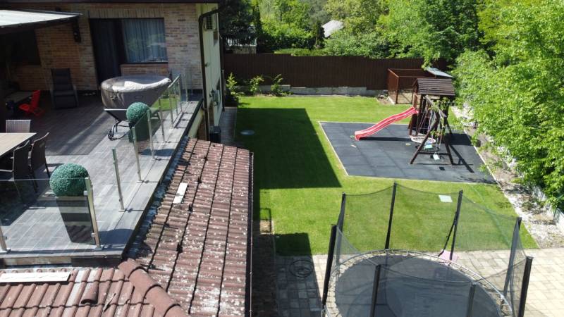 Veresegyház Hegyek városrészben kínáljuk eladásra ezt a minden igényt kielégítő, ÚJSZERŰ 391 m2-es családi HÁZAT, valamint 34 m2-es VENDÉGHÁZAT egy 1336 m2-es gyönyörűen gondozott, PARKOSÍTOTT telken.A jól átgondolt tervezésnek köszönhetően a hálószobák, és a hozzá tartozó fürdőszobák, wc-k jól szeparáltak az épület központi helyének számító rendkívül tágas, étkezős konyhától, és a világos nappalitól. Ez a 2 helyiség együtt 80 m2. Az igazi kikapcsolódást az alsó szinten található WELLNESS RÉSZLEG teszi teljessé, ahonnan a hatalmas nyílászáróknak köszönhetően remek kilátás nyílik a kertre. A 9x4 méteres medence és a mellette található jakuzzi hőszivattyús fűtéssel rendelkezik. Külön helyiségben található a szauna, és a zuhanyzó. Ugyanezen a szinten a 2 hálószoba mellett kialakításra került egy tároló, valamint egy tágas háztartási helyiség is.Az ingatlan másik különlegessége a csodaszép kertre, ill. a kültéri medencére néző, konyha-étkezőből nyíló 57 m2-es terasz.A vendégház 34 m2-es, saját konyhával, fürdőszobával, és garázzsal rendelkezik.A főépület garázsa 2 állásos, bentről is megközelíthető.További információért keressen nyugodtan, akár hétvégén is!