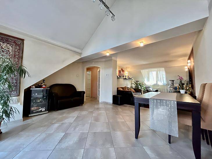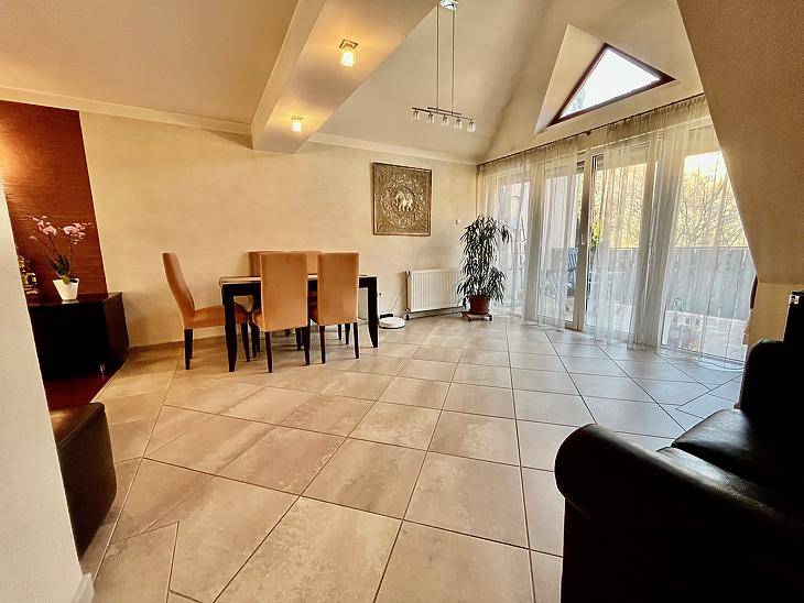 Eladó tágas tetőtéri lakás Újlak csendes, zöldövezeti részénA Kolosy tér és a Hármashatár-hegy közelében, egy hangulatos, macskaköves utcában kínálunk eladásra egy 148 m²-es, második emeleti tetőtéri lakást, egy négylakásos házban. A környék folyamatosan fejlődik, szemben lévő épületet épp felújítják, a közelben sportpálya is található.A lakás 3 különnyíló szobával rendelkezik (14, 16 és egy 33 m²-es nappali), utóbbiból közvetlen kijárat nyílik a napfényes, 10 m²-es teraszra. A konyha tágas, kamrával és francia erkéllyel. Külön fürdő, két WC, gardrób, valamint saját padlás és tároló is tartozik hozzá. A hálószobák klimatizáltak, a nappali igény esetén könnyen kettéosztható, így akár egy plusz szoba is kialakítható. A lakáshoz kizárólagos kertkapcsolat is jár.A ház használati megosztással rendelkezik, a társasházzá alakítás folyamatban van. Ritka lehetőség a környéken, ahol már szinte csak nagyobb társasházak találhatók, de a lakás jelenlegi állapotában is hitelezhetőHa egy napfényes, nyugodt, jól megközelíthető otthont keres Budán, ez a lakás remek választás. További információért, megtekintésért keressen minket bizalommal.