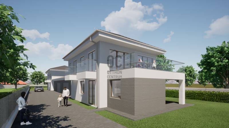 Érd kedvelt részén Fenyves -Parkvárosban eladó egy 174 nm-es Nappali + 4 szobás ,dupla komfortos dupla garázsos kétszintes ikerházfél .A telek utcafronti részén, kisebb kerttel rendelkező másik épület referencia száma:U0047612 ,Ára: 185.000.000 Ft.Méretében és elrendezésében teljesen azonos a két ikerház fél, egyben is megvásárolható.Kiváló lehetőség összeköltözéshez vagy cégközpont kialakításhoz.1304 nm-es telken található a két egymástól független, kivitelezésben, tervezésben és műszaki tartalomban prémium minőséget képviselő ingatlan, amely közel nulla energia igényű. Az épületek kizárólag a duplagarázsoknál érintkeznek egymással, egyéb közös falrész nincsen.A házhoz tartozó önálló kertrész:539,2nmAz építkezés kb. 90%-os készültségi fokon áll, a folytatás a vevői igények alapján történik.A burkolatok és szaniterek kiválasztása, a leendő tulajdonos igényeihez fog igazodni.Várható költözés az adásvételi szerződés megkötésétől 6 hónap.Elrendezés :Földszint (80 m²)- 40 m²-es amerikai konyhás nappali étkezővel és kandallókiállással- 12 m²-es fedett terasz, amely közvetlen kapcsolatot teremt a kerttel- Különálló szoba, amely bármilyen célra alkalmas- Kamra, háztartási helyiség/mosókonyha, tároló, WC és fürdőszoba- Tágas előtér és közlekedő- 37 m²-es dupla garázs, elektromos kapuval és külön vízkiállássalEmelet (57 m²)- 3 hálószoba, mindegyikhez saját terasz (köztük egy 24 m²-es nagyobb terasz)- A szülői hálószobához gardróbszoba kapcsolódik- Fürdőszoba WC-velKert:- Minden olalon zárt,minőségi kerítés- Térkövezett bejáró (gépkocsi és gyalogos)- Elektromos kapu, kaputelefon- Tereprendezés, termőtalajterítés (kertészeti munkákat nem beleértve)Műszaki paraméterek: •Alapozás: vasalt beton sávalap (c/16/24 betonból, lábazat: Leier zsalukő, vasalvamixerbetonnal betonozva, betonminőség c/16/16, vasalt szerelőbeton 12 cmvastagságban c/16/16 betonminőség).•Falazat: 30-as Leier tégla felmenő falazat (nútféderes falazóelemekkel, Baumit falazóhabarcsba falazva).•Kandalló: a földszinten helyet kap egy Leier 20-as kandalló kémény.•Födém: a földszinten monolit vasbeton födém és lépcső; az emeleten láng- és rovarmentesített fagerendás födém gipszkarton borítással (szeglemezes tetőszerkezet), 30 cm hőszigeteléssel.•Nyílászárók: antracit színű 3 rétegű hő és hangszigetelt üvegezéssel ellátott fa nyílászárók, rejtett redőnytokkal, részben elektromos redőnnyel, részben manuális redőnnyel.•Hőszigetelés: a földszinti aljzaton 12 cm, külső falakon 15 cm normálpolisztirol, födémen 30 cm üveggyapot paplan.•Hűtés, fűtés, melegvíz: Elektromos üzemű hőszivattyús rendszer (hőszivattyús padlófűtés, hőszivattyús mennyezeti hűtés-fűtés). A melegvizet egy 200 literes HMV tartály biztosítja, elektromos hőpatron rásegítéssel. H-tarifa (3x20A) biztosítása a hőszivattyú részére. Nappali tarifa (3 fázis, 3x16A) biztosítása a lakás és kiegészítő fűtőpatron részére. •Központi porszívó előkészítése (porszívómotor és gégecső nélkül).Az ár tartalmazza a(z):•elektromos kapukat, •kerítést, •kaputelefont, •antracit színű, Hörmann márkájú, motoros elektromos garázskaput (távirányítóval),•térkövezett bejárót (gépkocsi és gyalogos), •központi porszívó előkészítését,•beépített bejárati ajtót, •beltéri ajtókat kilinccsel bruttó 90.000 Ft/db-ig,•szanitereket, csaptelepeket együttesen 1.200.000 Ft/lakás összegig,•beltéri hideg burkolatokat: bruttó 9.000 Ft/nm-ig,•beltéri meleg burkolatokat: bruttó 7.000 Ft/nm-ig,•villamossági szerelvényeket alap, fehér színben (Legrand),•beltéri glettelést és festést: kétszer glettelve, két rétegben festve, fehér színben,•csatorna és bádogos munkálatokat (antracit színben, alumínium anyagokkal) a tervekkel megegyezően.A lakások fajlagos hőveszteségtényezője a közel nulla energiaigényű épületek követelményszintjének felel meg.A vételár kulcsrakész állapotra vonatkozik és az 5%-os áfát tartalmazza.Várható befejezés: Az adásvétel megkötése után 6 hónappalAz Otthon Centrum teljes körű ügyintézéssel (CSOK Plusz, hitel, babaváró) áll az eladók és a vevők rendelkezésére .Az adásvételi szerződés megkötéséhez igény szerint megbízható ügyvédi közreműködést biztosítunk, és segítséget nyújtunk az adásvételhez kapcsolódó ügyek intézéséhez.A kivitelező megbízható cég, több évtizedes működése révén számos referenciával rendelkezik Érden és Pest megyében, amelyek igény szerint megtekinthetők.CSOK igénybevehető, mivel céges építkezés.