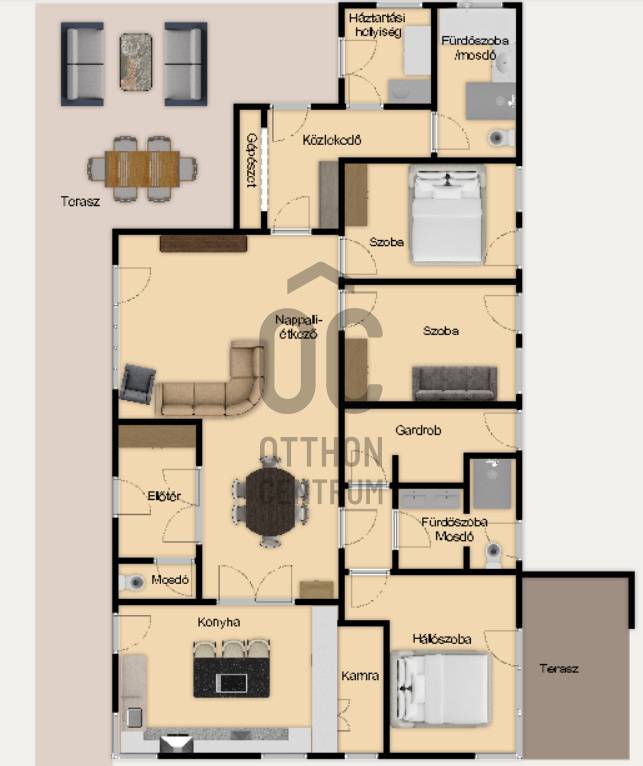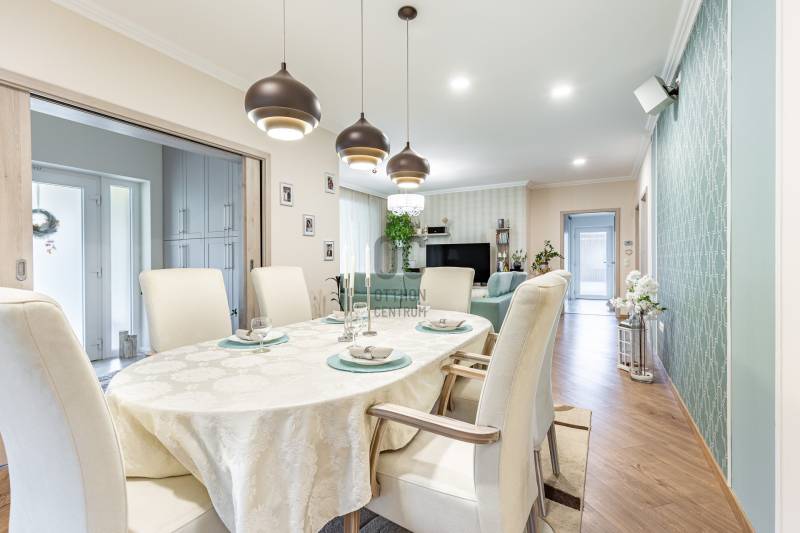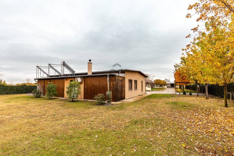 Telek: 2048 m²Lakóház: 150 m² hasznos alapterület + 30 m2 teraszMelléképület: 200 m² – közművesített, akár önálló lakóegységgé is alakítható________________________________________ A főépület minden részletében elegancia, kényelem és praktikumra való törekvés•Építés éve: 2016•38 cm-es hőszigetelt tégla falazat + 10 cm külső szigetelés, a födémen 30 cm hőszigetelés•3 hálószoba + nappali-étkező•Szülői hálószoba: saját fürdőszoba, gardrób, privát terasz•Hatalmas, világos konyha rejtett kamrával, beépített Miele kávéfőzővel, Lux víztisztítóval•Nagyméretű, fedett terasz Extrák:•Hőszivattyús fűtés- és hűtésrendszer, padló- és mennyezeti hőleadás, helyiségenként termosztáttal•Központi vízlágyító•Házközponti porszívó•Hővisszanyerős központi szellőztetőrendszer szénszűrővel•Öntözőrendszer, ablakokban automata balkonláda öntözőrendszer, robotfűnyíró•Minőségi, olasz burkolatok, egyedi készítésű bútorok•Alkonykapcsolós kül-és beltéri világítás•Finn és infraszauna, •Automata alumínium redőnyök, szúnyoghálók, elektromos kapu•18,5 kW-os napelem rendszer szaldó elszámolással, 3x20A áramlekötés•2 állásos fedett beálló, 30 m² terasz, minden szobából kertkapcsolat________________________________________ Melléképület:Lakófunkcióra alkalmas tervekkel rendelkezik – ideális vállalkozásra, vendégháznak vagy többgenerációs otthonnak.•200 m², három autó tárolására alkalmas garázzsal•Fürdőszoba, mosdó, több tárolóhelyiség•Önálló közművek, külön villanyóra, 3×20 A áramellátás•Vegyes tüzelésű kazán, padlófűtés + radiátoros fűtés•Napkollektoros rendszer 1000 literes tartállyal•Lakóépületté alakítás tervei rendelkezésre állnak•2 db 3 méter magas elektromos szekcionált kapu•Hűtő-fűtő klíma•Optikai internet a melléképületben is________________________________________ Egyéb:•Kamera rendszer•Akár bútorozottan is eladó•A kerítés teljes hosszában borostyánnal futtatva, így kialakítva a privátszférátSzolgáltatások és infrastruktúra:•Zsombó egyik legcsendesebb, szélső utcájában, minimális átmenő forgalom•A mindennapi élethez szükséges minden szolgáltatás és intézmény megtalálható a településen.Bevásárlási lehetőségek valamint orvosi rendelő, gyógyszertár, posta, pékség, termelői kispiac. A helyi bölcsőde óvoda és iskola kimondottan népszerűek a családosok körében.•Szegedtől 15 perc autóútra•Helyközi buszjáratok, a szomszédos Szatymazon vasútállomás is elérhető________________________________________Magánszféra, modern technológia és minőség minden részletben!Ár: 230.000.000 FtIrodánk teljes körű szolgáltatást nyújt, hitelügyintézői támogatással, jogi háttérrel, ügyfélközpontú hozzáállással.Tekintse meg személyesen! Várom hívását!06 70 454 2063