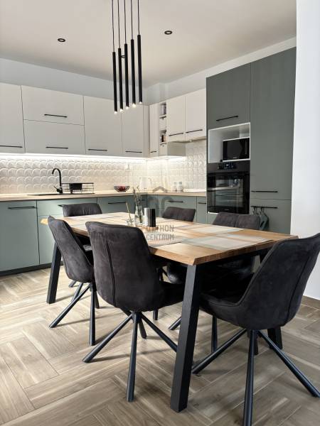 Eladó teljes körűen felújított, dupla komfortos családi ház nagy telekkel Vámospércsen!Kiváló elhelyezkedésű, igényesen felújított, belsőépítész által tervezett enteriőrrel rendelkező családi ház eladó, mindössze 5 perc sétára a városközponttól, bolttól és szintén sétatávolságra az iskolától/óvodától!A ház 17 méteres utcafronttal, új kerítéssel és elektromos kapuval rendelkezik, így biztonságos, zárt környezetet nyújt az egész családnak.Főbb jellemzők:•Teljes körű felújítás történt 4 évvel ezelőtt (víz-, villany-, szennyvíz-, gázrendszer teljes cseréje, teljes tetőszerkezet cseréje, alapokig visszabontva minden!) MINDENRŐL FOTÓDOKUMENTÁCIÓ KÉSZÜLT! •Új tetőszerkezet Bramac Merito Plus könnyített beton cseréppel•46 cm vastag vályogfalak, új nemesvakolattal ellátva•Teljes padlófűtés az egész házban + radiátoros kiegészítő fűtés•Új kombi gázkazán és 120 literes villanybojler biztosítja a melegvizet•3,5 kW-os Midea hűtő-fűtő klíma•Műanyag, 5 légkamrás, 2 rétegű nyílászárók, redőnnyel és szúnyoghálóvalElrendezés és helyiségek:•Tágas nappali – étkező – konyha egy légtérben, világos, barátságos hangulattal•szülői hálószoba saját zuhanyzós fürdővel•2 gyerekszoba, melyekhez saját fürdőszoba tartozik•Beépített szekrények a folyosón a praktikus tárolásért•30 m²-es terasz, víz- és lefolyókiállással – akár kültéri konyha is kialakíthatóKiegészítő helyiségek és extrák:•Külön bejáratú hátsó helyiség, jelenleg tárolóként funkcionál, de irodának vagy vendégszobának is tökéletesen alkalmas•10 m²-es pince, amely kiváló tárolásra vagy akár hobbyhelyiségnek is•1680 m²-es telek, ahol bőven jut hely kertnek, pihenésnek, akár medencének isKonyha és felszereltség:A konyha teljesen gépesített és beépített: mosó/szárítógép mosogatógép indukciós főzőlap sütő páraelszívó hűtőszekrényMinden szobában és a nappaliban TV és internet kiállás került kiépítésre, tökéletesen alkalmas modern családi élethez vagy home office-hoz is.További kérdés, megtekintés esetén hívjon, szívesen válaszolok!