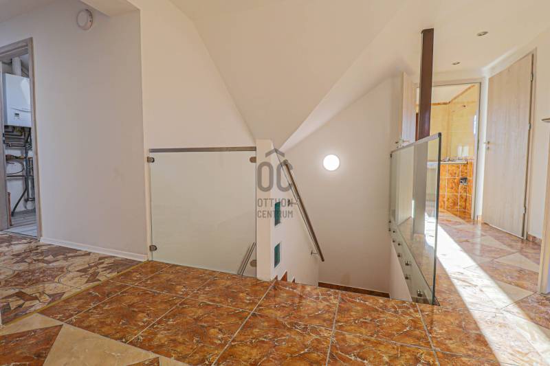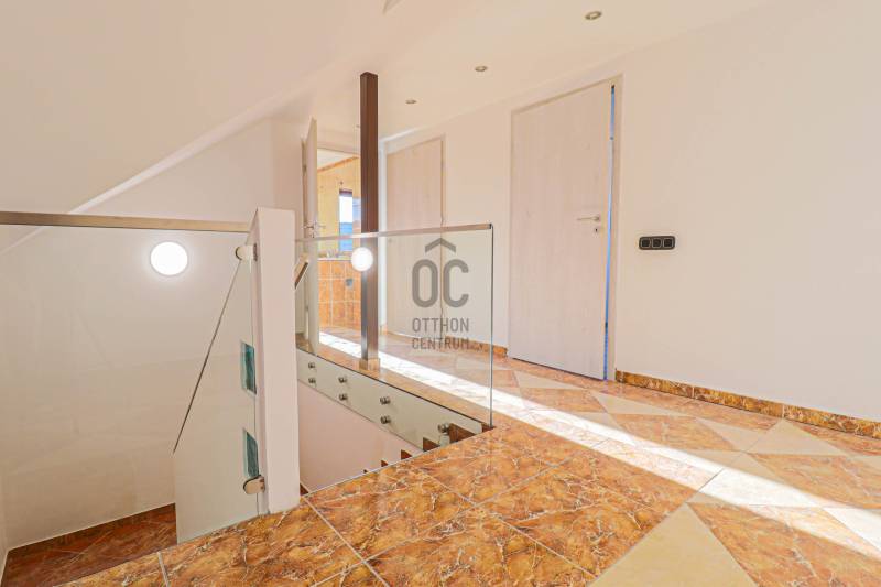 Kópházán, Soprontól és az osztrák határtól csupán néhány kilométerre, csendes zsákutcában kerül eladásra egy 2010-ben épült, egyedi tervezésű, minőségi családi ház, amely igazi privát szférát biztosít tágas, 844 m²-es, zárt telkén.A gondosan megtervezett, kétszintes, teljesen alápincézett otthon, a nettó 257 m2 lakóterületével minden részletében a kényelmet és a minőséget képviseli.A gondozott udvarban medence, kerti kiülő és zöldövezeti nyugalom várja új tulajdonosát.Az ingatlan azonnal birtokba vehető.FŐBB JELLEMZŐKAlapterület és telek:844 m² parkosított, zárt udvarTeljesen alápincézett, két szintes családi házPinceszint:Dupla garázsHáztartási helyiség és mosókonyha40 m2 Hobby szobaTárolókFöldszint:Tágas, 50 m²-es amerikai konyhás nappali hatalmas üvegfelületekkel és 32 m2- es fedett télikert kapcsolattal3 hálószoba2 fürdőszobaEmelet:2 hálószobaFürdőszobaGépészeti helyiségKét hatalmas, burkolt tér előkészített vízkiállásokkal – akár további szobák, konyha kialakításáraMŰSDZAKI TARTALMAK/ EXTRÁKKorszerű fa nyílászárókHelyiségenként szabályozható fűtés, padlófűtésÚj kondenzációs gázkazánKlimatizált helyiségekElektromos redőnyőkRiasztó- és kamerarendszerAJÁNLJUKAz ingatlan nagyobb családoknak, kétgenerációs együttélésre is ideális, de üzleti célra, vendégháznak is remek választás lehet.A környék nyugalma, a tágas terek és a prémium kivitelezés együttese igazán különleges lehetőséget kínál.Azonnal költözhető, kulcsrakész otthon Kópháza egyik legnyugodtabb utcájában.Hívjon a megtekintésért!Hitelre van szüksége?Az Otthon Centrum az ország egyik legnagyobb és legmegbízhatóbb hitelközvetítőjeként, teljes körű és díjmentes hitelügyintézéssel, biztosításkötéssel áll rendelkezésére!Kérje személyre szabott ajánlatunkat Kollégáinktól!