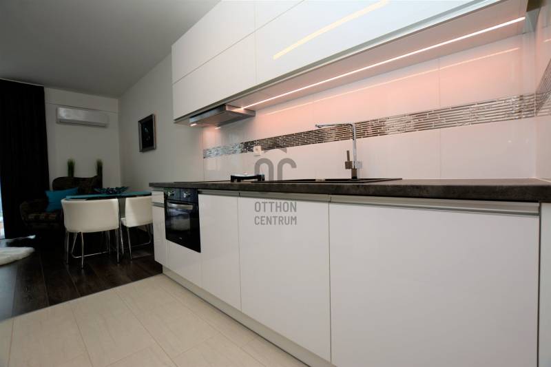 Exklúzív nagy teraszos Penthouse lakást kínálok eladásra a DunaGarden lakóparkban, Dunakeszin, csodálatos természeti panorámával.A 2016-ban újonnan épült lakópark zöldövezetben, a Duna közvetlen közelében, a parttól mindössze 300 méterre, a városközponttól nem messze található, ahol kiváló busz-és vonatközlekedés, valamint kiváló infrastruktúra található, mint például iskola, óvoda, klinika, bevásárlási lehetőségek, bank, szupermarket. Közvetlenül az épület mellett található a Spar szupermarket.A mélygarázsnak köszönhetően nincs parkolási probléma, hiszen elegendő parkolóhely áll rendelkezésre, ahonnan közvetlenül be lehet jutni az épületbe.A házban két nagy teherbírású lift és két lépcsőház található.A lakás központi fűtésű, egyedi mérőórával rendelkezik és \"A\" energiaosztályba tartozik. Különös figyelmet fordítottak a lakások közötti hangszigetelésre, és minden válaszfal Silka 30 szigeteléssel van ellátva. A konyha teljesen berendezett, gépiesített. A fürdőszoba és előszoba beépített design világítással rendelkezik.A lakáshoz opcionálisan két parkolóhely vásárolható meg a mélygarázsban, melyek egyenként 7,5 millió forintba kerülnek.Legyen Öné ez a különleges Penthouse lakás és töltse minden napját a kényelem és a luxus jegyében.*A képek eltérhetnek az aktuális ingatlantól, mert több lakás is eladó, méretük és elosztásuk viszont azonos.