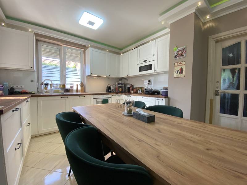 Földszintes álomOtthon GödönGöd a Dunakanyar kapuja, egy festői szépségű bűbájos kertváros a Főváros biztonságot nyújtó közelében.Csodálatos természeti adottságaival, jó nevű iskoláival, pezsgő Duna-parti életével, madárcsicsergős, jó levegőjű hétköznapjaival vált a családalapítók és kiköltözők kedvelt célpontjává.Itt, Felsőgöd szívében került eladósorba egy újjáépített, megkapó hangulatú családi ház.Rendezett, családi házas utcában, tisztes porták szomszédságában, jól ellátott területen kapott helyet.Majd\' 900m2-es kertjét automata kapuval felszerelt míves kovácsoltvas kerítés őrzi, viacoloros autóbeállójáról megközelíthető a 2 autó parkoltatására alkalmas duplagarázs, de a mediterrán térkövön további 3-4 autó parkoltatható kerten belül.A kert gyönyörűen karbantartott, rózsatövek és örökzöld dísznövényekkel ültetett lugasok emelik hangulatát. Kerti tároló gondoskodik a szerszámok elhelyezéséről, gyűrűs kút pedig a kényelmes pázsit gondozásról. Egészséges, beállt thuja sövény, épített játszótér, hatalmas medence, és jakuzzi is szolgálják a Család nyugalmát, ezek mind a vételár részét képezik!A ház 185m2-es, FÖLDSZINTES elrendezésű, Tulajdonosai minőségbeli maximalizmusának méltó tükreként egyedi hangulatvilágú Otthont teremtettek a 2016os teljes átépítés során.3 hálószoba (16m2,18m2,25m2!), 2 fürdőszoba, gardróbhelyiség, hatalmas nappali, spejz, konyha-étkező, és tágas előszoba alkotják a helyiséglistát.A fűtésrendszer megújult, kondenzációs cirkókazán került behelyezésre, a hidegburkolatok alatt padlófűtéssel, hálószobákban radiátoros hőleadókkal.Külső dryvit hőszigetelés, KLÍMA, redőnnyel és szúnyoghálóval is felszerelt műanyagtokos hang és hőszigetelő nyílászárók, rusztikus beltéri ajtók, kamera és riasztórendszer, magasfényű gépesített konyhabútor!Kiváló tájolásának köszönhetően egész nap világos, fedett teraszán az egész család kényelmesen fogyaszthatja a nyáresti vacsorát.Jöjjön el, nézze meg, ha nagy terekre vágyik, ha nem akar felújítani, ha madárcsicsergős bájos utcában tervezi Családja jövőjét egy magas felszereltségű, nagybetűs OTTHON-ban!Vigyázat! -abszolút beleszeretős!Közelben: MINDEN: vasútállomás ( Bp Nyugati PU 30p), városi buszjárat megállója ( Bp.Újpest Városkapu 40p), iskola, óvoda, orvosi rendelő, posta, strand, teniszpark, bicikliút, játszótér, lovarda, bevásárlási lehetőségek, pékség, street gym park.Budapest autópályán 25 perc alatt elérhető, autópálya lehajtó 6perc!