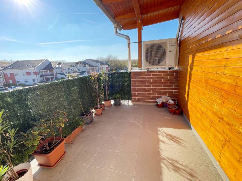 Eladó Veresegyház egyik legkedveltebb részén, a Ligetekben, egy kiváló elhelyezkedésű, második emeleti, erkélyes társasházi lakás!A tágas, világos otthon átgondolt elrendezésű: az előszobából egy amerikai konyhás nappaliba érkezünk, ahol modern, gépesített konyhabútor (négyégős főzőlap, légkeveréses sütő, páraelszívó) várja az új tulajdonost. A lakásban két külön nyíló szoba, egy kádas fürdőszoba WC-vel és mosógépkiállással, valamint egy külön mellékhelyiség és egy kamra is található.A nappaliból kilépve egy tágas, 7 négyzetméteres erkély biztosít kellemes pihenőhelyet a szabadban. A lakásban két légkondicionáló gondoskodik a nyári komfortérzetről.A társasház rendezett, a lakóközösség barátságos, a ház mögött pedig gondozott, közös kert található, ahol a gyermekek részére homokozó is ki lett alakítva. A lakáshoz saját, zárt udvari parkolóhely és egy külön tároló is tartozik.A környék rendkívül jól ellátott: a közelben megtalálható buszmegálló, LIDL, pékség, zöldséges, hentes, gyógyszertár, fodrász, valamint Veresegyház közkedvelt cukrászdája, a Gombai cukrászda. Emellett a közelben Rossmann, Pepco, Deichmann és számos egyéb üzlet, valamint több játszótér is elérhető. Az óvoda, bölcsőde és az orvosi rendelő is pár percre található, így a lakás családok számára is ideális választás.Az ingatlan tulajdoni lapon 60-nmes, 2 szobás!