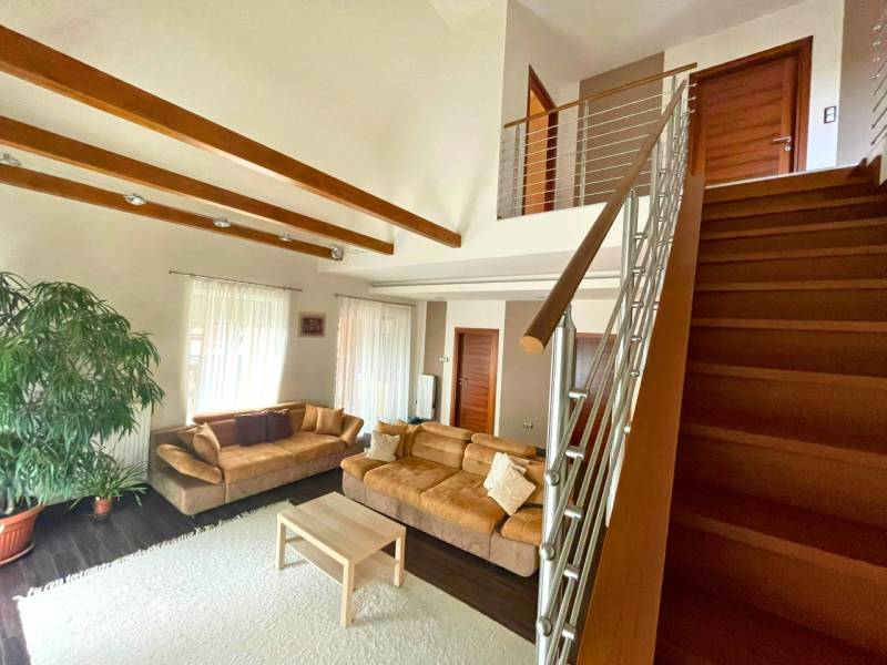 Esztétikus és magas felszereltségű családi ház eladó Őrbottyán központjában!Az ingatlan egyedi tervek alapján épült 2005-ben, egy összközműves, 991 nm-es telekre. A 168 nm-es, 5 szobás ház tégla építésű, 5 cm hőszigeteléssel ellátott. Fűtéséről és melegvíz-ellátásról kondenzációs gázkazán gondoskodik, a közös helyiségekben és fürdőszobákban padlófűtéssel, hálószobákban radiátor hőleadókkal. A napelem rendszernek és a ház adottságainak köszönhetően a rezsi rendkívül alacsony.A földszinten hűtő-fűtő klíma, a tetőtérben rejtett beltéri egységgel rendelkező klíma biztosítja a kellemes hőmérsékletet.További műszaki adatok: - műanyag nyílászárók alumínium redőnyökkel és szúnyoghálóval- biztonsági bejárati ajtó,- magas minőségű beltéri ajtók, burkolatok- riasztó és kamera rendszer- BWT vízlágyító rendszer- elektromos kapu és garázsajtó- öntözőrendszer a kertben- gépesített konyha- jacuzzi- beépített szekrények- dupla mosdós fürdőszobák- fedett 26 nm-es terasz- fedett, dupla kocsi beálló- gondozott növényzet- térkövezett udvarRöviden az otthonról:A házba belépve a közlekedőn át egy ízlésesen kialakított és meleg hangulatú térbe érkezünk, ahol 2 lépcsőfokos szinteltolással elkülönül a nagy étkező-konyha rész és a galériás kialakítás miatt, tágas és világos terekkel rendelkező, otthonos nappali. A földszinten helyett kapott egy hálószoba saját gardróbbal, fürdőszoba WC-vel, háztartási helyiség, ahonnan közvetlen átjárás vezet a 16 nm-es garázsba.A nappali impozáns eleme sötétszínű, kényelmes lépcső, amely a tetőtérbe vezet. Itt 3 hálószoba és egy zuhanyzó+WC kapott helyet, kis előtérrel. A szobák hangulata a tető összetett kialakítása miatt igazi elvonulós, pihenős, privát helyek a család kisebb-nagyobb tagjai számára.Télen-nyáron élvezhetjük a nappaliból és az udvarról is megközelíthető nagy, fedett teraszt, ami jó beszélgetések, pihenések ideális helyszíne.Az udvar belső részében fedett parkolási lehetőség is rendelkezésre áll, ezen felül az utcafronton található fűtött garázs és további parkolóhelyek állnak rendelkezésre kapun belül. A telek hátsó, füves része ideális helyszín kerti-sütögető kialakítására, gyerekeknek játszani, konyhakertnek és család négylábú tagjai is örömüket lelik benne.Elhelyezkedés:Őrbottyán Pest vármegyében, a fővárostól mindössze 25 kilométerre, Veresegyház és Vác között található, nyugodt, zöldövezeti település, kiváló közlekedéssel Budapest irányába.Autóval az M2-es autóúton, illetve a Budapest–Vác vasútvonalon kényelmesen megközelíthető; a vonat kb. 35–40 perc alatt a Nyugati pályaudvarra ér.A településen van óvoda, bölcsőde, iskola, orvosi rendelő, posta, gyógyszertár, kisebb éttermek és több bevásárlási lehetőség is. Őrbottyán rendezett, biztonságos, családbarát környezetet kínál, ahol a kertvárosi nyugalom és a főváros közelsége ideálisan találkozik.Ha felkeltettem érdeklődését hívjon bizalommal. Amiben segíteni tudjuk ingatlanvásárlását:- jogi háttér- földhivatali ügyintézés- ingyenes, bankfüggetlen hitelügyintézés (CSOK és Babaváró ügyintézése is.)- energetikai tanúsítvány elkészítése- biztosítás- belsőépítész