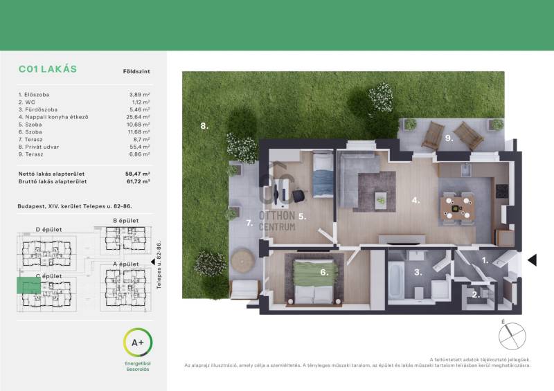 Projekt bemutatásaA Daisy Liget Zugló csendes részén épül, közel a Bosnyék térhez. A megújult kertvárosias környezet a pesti oldal egyik legkedveltebb részei közé tartozik, az itt élők egyszerre élvezhetik a csöndes kis utcák nyugalmát és a belváros közelségét. A Bosnyák téren mindent megtalálunk ami a hétköznapi élethez szükséges: a Zenit corso bevásárlóközpontot, a Bosnyák téri piacot, patikát, éttermeket és kávézókat.Számos óvodát, általános iskolát, játszóteret és sportközpontot is találunk a 10 perces sétatávolságon belül.A társasház különleges homlokzatával, egyedi fiatalos dizájnjával, kiemelkedik a környező épületek közül. A 4 emelet magas, szellősen elhelyezett épületek tökéletesen illeszkednek a környéken jellegzetes, előkertes kialakítású épületekhez.Figyelembe véve a jövő elvárásait, a társasház modern, környezetbarát, mennyezeti hűtő, -fűtő rendszerrel ellátott.Vevőinknek lehetőségük nyílik, hogy új otthonukat az utolsó részletig személyre szabják: változtathatnak az ingatlann elosztásán, széles kollekcióból választhatnak meleg- és hideg burkolatokat, szanitereket. Az alapáras burkolatokon felül, elérhetőek feláras termékek is, mely biztosítja, hogy olyan lakásban lakjanak mit megálmodtak maguknak.A jelen adatok tájékoztató jellegűek, ezért a Beruházó (sem a hirdető) azok változásával, vagy bármely attól való eltéréssel kapcsolatban semmilyen kötelezettséget, vagy felelősséget nem vállal.Az alaprajzokon ábrázolt berendezési tárgyak és bútorok, a burkolatok megjelenése nem képezi a szerződés tárgyát. A pontos felszereltségről a műszaki leírásban olvashat bővebben.Az aktuális lakáskínálatról és árakról érdeklődjön telefonon!