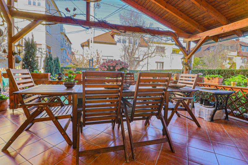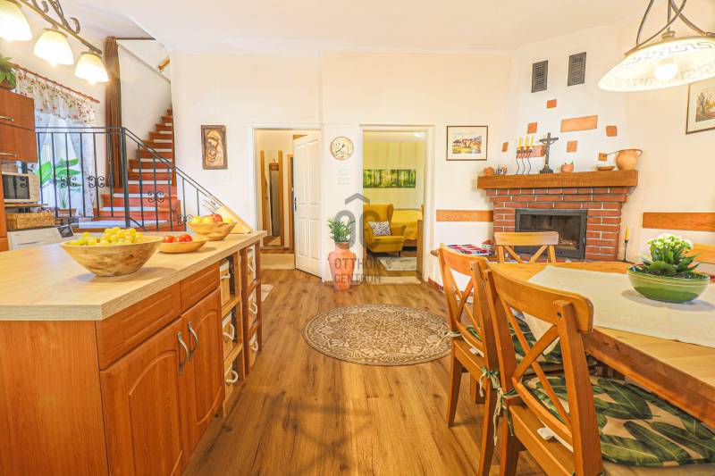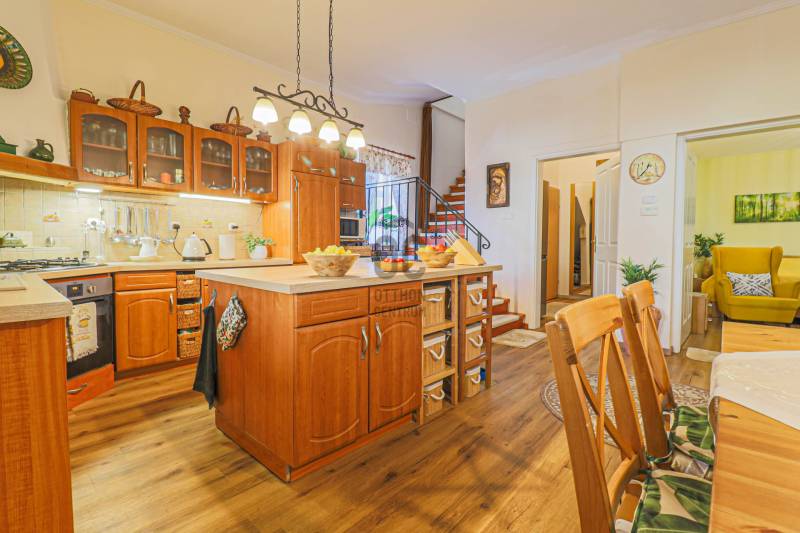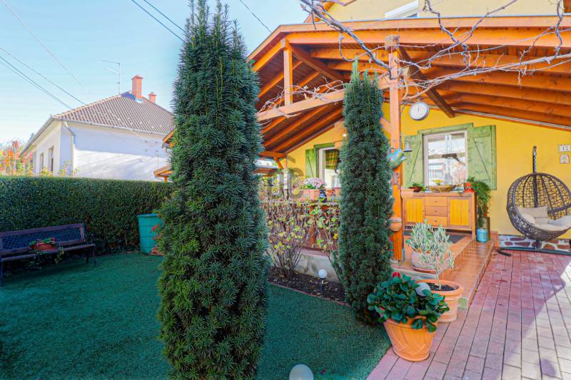 Ha mindig is egy nyugodt, zöldövezeti otthonról álmodott, ahol a madarak csicsergésére ébredhet, mégis karnyújtásnyira van a város minden kényelmétől – itt megtalálja. A szépen karbantartott, kétszintes családi ház egy csendes mellékutcában helyezkedik el, rendezett környezetben.Az alsó szinten világos, tágas nappali-étkezős konyha, egy hálószoba, kamra, valamint fürdő és külön wc található.A felső szinten két további szoba, egy gardrób és egy második fürdőszoba kapott helyet – ideális elrendezés családok számára.A nappali központi eleme a hangulatos kandalló, amely nemcsak meleget, hanem igazi otthonérzést is áraszt a téli estéken.A Vaillant gázkazán a fűtésről, a műanyag nyílászárók és a szigetelt homlokzat és födém pedig az energiahatékonyságról gondoskodnak.A ház színvilága és belső kialakítása harmóniát sugároz – a természetes anyagok, a fa melege és a finom részletek egy igazán barátságos légkört teremtenek. A fedett terasz a ház igazi ékköve: itt kávézhat reggel a szőlőlugas árnyékában, vagy pihenhet este egy pohár borral a kézben.Az udvaron helyet kapott egy fatároló, egy fedett gépkocsibeálló, valamint egy nyitott parkoló elektromos kapuval.A környéken minden megtalálható, amire a mindennapokban szüksége lehet – iskola, óvoda, bolt, gyógyszertár, buszmegálló néhány perc sétával elérhető.Békesség, melegség és harmónia Sopron egyik legszebb részén.Szeretettel várom hívását!Hitelre van szüksége?Az Otthon Centrum az ország egyik legnagyobb és legmegbízhatóbb hitelközvetítőjeként, teljes körű és díjmentes hitelügyintézéssel, biztosításkötéssel áll rendelkezésére!Kérje személyre szabott ajánlatunkat Kollégáinktól!