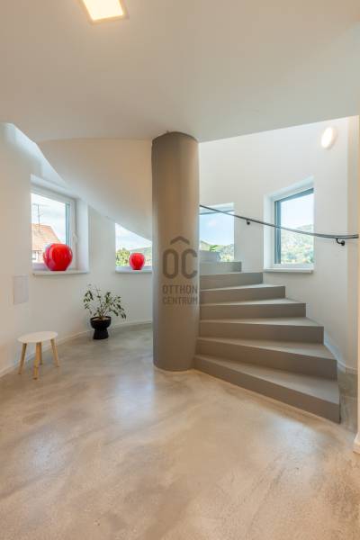Eladásra kínálok egy impozáns, háromszintes, 460 m²-es családi házat Csobánka egyik legszebb részén, 2075 m²-es telken. Az ingatlan 2002-ben épült masszív tégla szerkezettel, és azóta is gondosan karbantartott. Az otthon öt tágas szobával, nagyvonalú közösségi terekkel és modern, megújuló energiát használó fűtési rendszerrel rendelkezik, amely nemcsak kényelmes, hanem energiatakarékos működést is biztosít.A ház minden helyisége bőséges természetes fényben fürdik, a nagy üvegfelületeknek köszönhetően pedig a környező hegyek és a zöldellő kert látványa szinte minden ablakból élvezhető. Az épület kialakítása a harmóniát és nyugalmat szolgálja, miközben minden modern kényelmet kínál a mindennapokhoz. Ez az otthon ideális választás mindazok számára, akik tágas, napfényes, természetközeli életteret keresnek a Pilis lábánál.Csobánka Pest megye egyik legbájosabb települése, amelyet a Pilis-hegység festői környezete vesz körül. A falu a város zajától távol esik, mégis könnyen megközelíthető Budapest irányából, így tökéletes egyensúlyt kínál a nyugalom és a praktikum között. A környék bővelkedik kirándulási és túrázási lehetőségekben, a levegő kristálytiszta, a közösség pedig barátságos és befogadó – itt valóban otthon érezheti magát az ember.Ha egy ritka adottságokkal rendelkező, különleges hangulatú otthont keres, ahol a természet közelsége és a modern életstílus kéz a kézben jár, akkor ez az ingatlan Önnek szól.További részletekért hívjon mielőbb!Egyedi igényekre szabott lakáshitelekkel állunk rendelkezésére. Bankfüggetlen Hitel Centrumunk az országban elérhető összes bank és hitelintézet ajánlatát versenyezteti az Ön számára díjmentesen.Munkatársaink nagy szakmai tapasztalattal várják Önt az előre egyeztetett időpontban akár a normál munkaidő után is.
