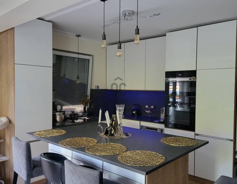 Fedezze fel ezt a lenyűgöző, modern ikerházfelet, amely Budaörs központi, mégis csendes részén várja új tulajdonosát. A lokáció tökéletes: pár perc az autópálya, a bevásárlóközpontok és Budapest határa, így minden elérhető, miközben otthona a kertvárosi nyugalom szigetét kínálja.A teljes konyha/nappali pár éve lett felújítva a modern bútorok és a korszerű gépek beépítésével.A 5 szobás, teraszos és erkélyes otthon minden részletében a kortárs design és a minőség találkozása. A gondosan megtervezett belső terek, a beépített szekrények által maximalizált helykihasználás és a letisztult, egyedi stílus azonnal magával ragad.Az épületet prémium anyagok felhasználásával alkották meg, ahol minden felület és részlet a minőség iránti elkötelezettséget tükrözi. A napfényes terek és a tetőtér beépítésének lehetősége további rugalmasságot adnak a jövőre nézve.A napelemeknek és az A++ energetikai besorolásnak köszönhetően az otthon környezettudatos és rendkívül alacsony fenntartású, így az elegancia mellé tudatosság is társul.Ez az ingatlan nem csupán egy ház — élettér, amely inspirál, megnyugtat és kiemel a hétköznapokból.Azonnal költözhető, kompromisszummentes választás azoknak, akik a tökéletest keresik.