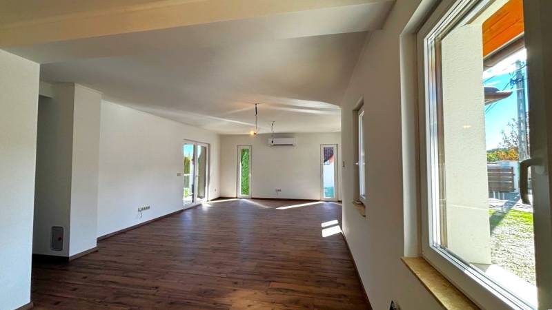 A Zalai-dombság nyugodt szeglete - ZalacsányMagyarország szebbnél szebb vidéki tájai közül is kiemelkedik nyugalmával és egyedi hangulatával a Zalai-dombság lágyan hullámzó, szelíd vidéke.Zalacsány szívében új építésű családi ház keresi igényes tulajdonosát.A 2024-ben épült egyszintes ház, 111 nm alapterülettel és 19 nm-es teraszkapcsolattal rendelkezik.A modern,letisztult formákkal megálmodott épület elosztása - 3 hálószoba, tágas nappali, amerikai konyha-étkező, 2 fürdőszoba , tároló-gépészeti helyiség, terasz.Az otthon melegét hőszivattyús padlófűtés ,a kellemes hőmérsékletet hűtő-fűtő klíma berendezés biztosítja.A 3 rétegű,, hőszigetelt nyílászárók, elektromos redőnnyel, szúnyoghálóval felszereltek.Az energiatakarékos , környezetbarát ház a mai kor követelményeinek megfelelően, minőségi alapanyagok felhasználásával kerül kivitelezésre.A teraszról mesés zöldövezeti panoráma látható.A gondozott, füvesített kert 631 nm területtel rendelkezik.Központi elhelyezkedésének köszönhetően bevásárló lehetőség, éttermek sétatávolságra találhatók.A ház kitűnő választás állandó lakhatásra, vagy akár nyaralónak is remek befektetés.Tulajdonviszonyok rendezettek, rövid határidővel birtokba vehető.A falusi CSOK , és az új Otthon Start kedvező kamatozású hitel a településen is igénybe vehető.Zalacsány, a zalai vidék gyöngyszeme, olyan hely, ahol az idő lassabban telik, és a természet szépségei veszik körül az embert. Ez a bájos falu a Zalai-dombság ölelésében fekszik, csak néhány kilométerre a Balaton nyugati partjától.A csendes, természetközeli falu több nevezetességgel rendelkezik: Csányi-család mauzóleuma, Árpád-kori földvár és tanösvény, a 11 hektár területű kedvelt horgásztó, egykori Batthyány-kúria és ősfás park, amely napjainkban kastélyszállóként működik.Itt nyílt meg Zala Springs Golf Resort nevű sport- és idegenforgalmi komplexum, amely Európa egyik legszebb fekvésű pályája.A környéken számtalan látnivaló, kirándulási lehetőség, kerékpárút található.A wellness szerelmesei is otthonra találnak a környéken. Az ismert hévízi gyógytó csupán 9 kilométerre található, további kedvelt fürdőhelyek a szomszédos település Kehidakustány, és a közelben lévő Zalakaros, Zalaszentgrót.Ha felkeltette az érdeklődését, hívjon bizalommal!