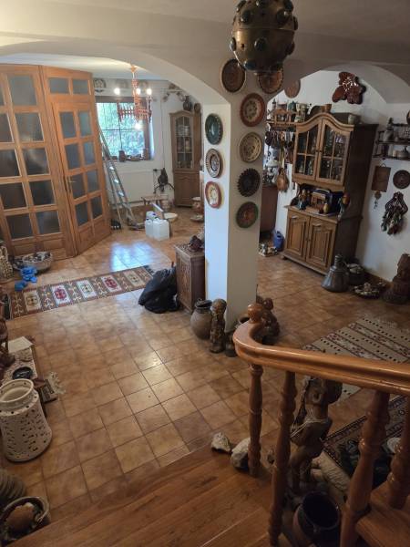Veszprém belvárosához közel, de mégis csendes, zöldövezeti részen vált eladóvá ez az 1990-es évek elején épült tégla családi ház, mely 3 szinten mintegy 300 négyzetméter hasznos alapterülettel rendelkezik.A ház - elhelyezkedését tekintve - átmenő forgalomtól mentes helyen, egy zsákutca végén található, körbekerített, parkosított telken. A második és harmadik emeletéről is szép rálátást kapunk a veszprémi Várra és várnegyedre, mely egyedi panorámát kölcsönöz a nappalinak és a szobáknak is.Az ingatlan összközműves, riasztóval védett. Belső kialakítását tekintve egy többgyermekes családnak, de akár többgenerációs otthonnak is tökéletes választás lehet! A ház szintenkénti elosztása:- Földszint: előszoba, fogadótér - lépcsőház, szoba, közlekedő, fürdőszoba, mosókonyha/ gépészet, kamra, tároló, garázs, - 1. szint: közlekedő, hálószoba, nappali + terasz, wc, fürdőszoba, kamra, dolgozó szoba, konyha+ étkező közvetlen udvarkapcsolattal- 2.szint: 3 hálószoba, teakonyha, közlekedő, fürdőszoba, wc, tárolóA ház fűtését gázkazán látja el radiátoros hőleadókkal, nyílászárói fából készültek.Amennyiben kérdése merülne fel az ingatlannal kapcsolatban vagy szeretné megtekinteni, kérem keressen megadott elérhetőségeim egyikén!