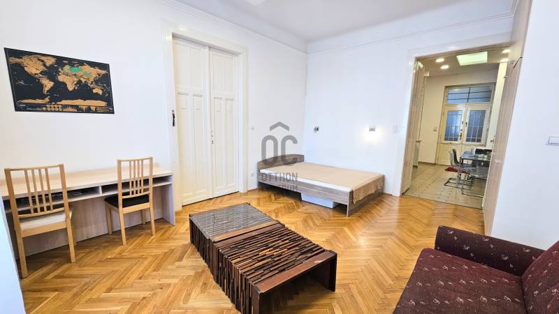 Eladó igényesen felújított, bútorozott nagypolgári lakás a Corvin sétány közelében!Főbb előnyök:-Teljes körűen felújított, azonnal költözhető- 3,4 m-es belmagasság, tágas, világos terek- Kényelmes, nagy szobák, gépesített konyha étkezővel- Bútorozott állapot – ideális befektetés vagy azonnali beköltözésre- Kiváló közlekedés: M3 metró, buszok, trolik pár perc sétára- Délre tájolt nappali, napfényes, utcai kilátással- Rendezett, liftes, téglaépítésű társasházLeírás:Budapest VIII. kerületében, a közkedvelt Corvin sétány szomszédságában kínálunk eladásra egy 77 m²-es, 2+1 félszobás, 3. emeleti nagypolgári lakást, amely 2015-ben teljes körű felújításon esett át. A munkálatok során megújult a gépészet, az elektromos hálózat, riasztó rendszer és a burkolatok is, így az ingatlan modern, kifogástalan állapotban várja új tulajdonosát.A világos, déli fekvésű nappali és a magas belmagasság elegáns, tágas érzetet ad, a lakás pedig teljes bútorzattal kerül értékesítésre, így azonnal költözhető vagy kiadható.A fűtésről gáz cirkó gondoskodik, a közös költség mindössze 30.000 Ft, amely a vízfogyasztást és a felújítási alapot is tartalmazza.Kiváló elhelyezkedése miatt mind saját otthonnak, mind befektetésnek remek választás: a közelben található a Semmelweis Egyetem, a Pázmány és a Nemzeti Közszolgálati Egyetem, valamint számos szolgáltatás, üzlet, étterem és a Corvin Plaza is könnyen elérhető.Kérdés esetén forduljon hozzám bizalommal!