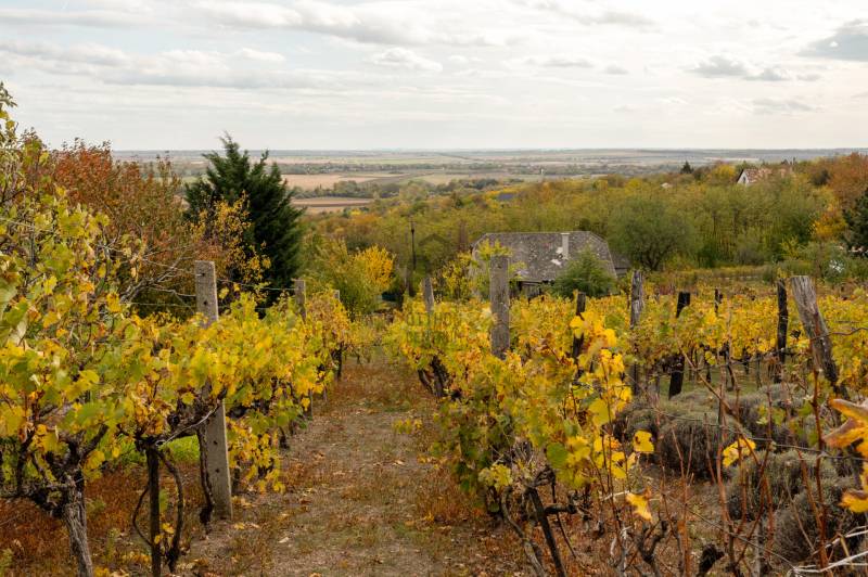 Romantikus nyugalom a varázslatos pázmándi szőlőhegyenRákanyarodunk a szőlőhegyre vivő útra, és megyünk. Eleinte aszfalt, megyünk felfelé, kétoldalt szőlők, kertek, házikók, aztán az út zúzott kövesre vált, közeleg a dombtető, ahol már az erdő az úr, de még előtte jobbra kanyarodunk és megékezünk a nyeles telekként működő kis birtokra. Gondozott kertek, szőlőültetvények, csinos présházak övezik utunkat. Ápoltabb vidék, mint amire számítunk és kicsit mostohább, mint amit a szőlő és bor megérdemel.A 707 nm-es telken 1972-ben épült egy masszív présház és alatta a betonfödémes pince. Azóta minden évben bort érlel ez a pince, de megérett az idő a tulajdonosváltásra.A házikó egy klasszikus egy szoba + konyhás beosztású, masszív szerkezetű, tégla falazatú miniház. A korábbi erkély mára már üvegezett veranda, ahol az étkezőasztal kapott helyet és csodálhatjuk Pázmánd lankáit, a tájat. Fürdőszoba nincs, de kialakítható, a víz fúrt kútról lenne megoldható. Jelenleg csapadékvíz gyűjtésre van lehetőség. A villany be van vezetve. Fűtése jelenleg is megoldott egy kis vaskályhával, épített kéménnyel.A telek egy külön helyrajzi számon bejegyzett úton közelíthető meg, mely tulajdonjogilag a felső szomszéddal közös 50-50% arányban, a telek adásvételével egyidejűleg átadó a vevőnek, ára benne van a vételárban.A sétával bejárható környék a helyiek kirándulóhelye, főbb érdekességei a Pázmándi sziklák kilátópont, Szent Vendel kőszobra, Szent Orbán faszobra, valamint borral kínáló pincék és erdős-sziklás sétautak.Ez a kisház a nomád körülményektől vissza nem riadó természetkedvelők érdeklődésére tarthat számot. Egy kis korszerűsítéssel egész éves lakhatásra is alkalmassá tehető, és kis méreteinek köszönhetően kis rezsiköltségekkel fenntartható.Ez az ingatlan a \"Felező csomag\" megbízási portfólióhoz tartozik. Részletek az Otthon Centrum weboldalán.