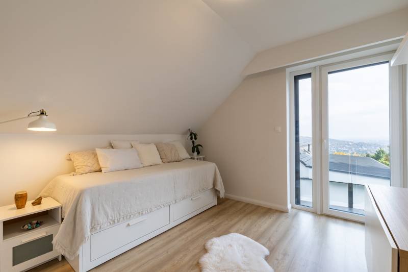 Finoman megkomponált otthon, ahol a fény és a csend egy nyelvet beszél. - Üdv itthon! RÖVID ÖSSZEFOGLALÓ Budapest III. kerületében, a méltán kedvelt, és keresett Testvérhegy a Jablonka útján vált elérhetővé ez a 2020-ben épült családi ház. Az épület háromszintes, 162 m²-es, négyszobás elrendezésű, két fürdőszobával és egy vendégmosdóval, tágas terasszal és erkélykapcsolattal, valamint saját kerttel. Fűtését gázcirkó látja el padlófűtés és radiátor kombinációjával, a nyári komfortot klíma biztosítja. A házhoz 423 m²-es kert, és két garázshely tartozik, melynek árát a vételár tartalmazza, csak úgy, mint a beépített bútorzatot, és gépesítést. LOKÁICIÓ ÉS KÖRNYEZET A Jablonka út környéke a III. kerület egyik legkedveltebb családiházas övezete – közel a csodás hegyvidéki erdőkhöz, kiránduló helyekhez, - mint a Virányos-nyereg, a Vihar-hegyi kilátópont vagy a híres Guckler Károly-kilátó - mégis néhány percnyire a várostól. Napjaink legkeresettebb lokációi bírnak ezzel a két fontos tulajdonsággal. Az utóbbi évtizedben nem várt módon felértékelődött a természetközeli helyek értéke, azonban a modern életstílus megköveteli, hogy könnyen és gyorsan elérhető legyen a város annak minden szolgáltatásával. Ez a kombináció verhetetlen napjaink ingatlanpiacán, és a Jablonka út ennek egyik ékes példája. Néhány perc alatt elérhető az Árpád -híd és a Margit sziget, a Reggel, amikor elindul az ember otthonról, egy ismerős arc köszön az utcán – ez a fajta közvetlenség jellemzi a környéket. A mindennapi élethez szükséges szolgáltatások (boltok, gyógyszertár, iskola, óvoda) minden itt van kézközelben. ÉPÜLET A 2020-ben épült ház kortárs, visszafogott eleganciát képvisel. Világos homlokzatát grafitszürke részletek és üvegkorlátok tagolják, a tágas nyílászárókon át pedig minden évszak a maga hangulatában írja újra az otthon képét. Tavasszal a kert ébredése az első fényekkel együtt indul: az ablakokon beáradó friss zöld illat a ház minden szintjét átjárja, a nappali teréből nézve a fák rügyezése lassan kibontott festménynek tűnik. Nyáron a terasz a nappali természetes folytatásává válik – a kert zöldje visszatükröződik az üvegfelületeken, a levegőben grillezés, friss fű és esti bor illata keveredik. Ilyenkor a ház valóban együtt él a kinttel. Ősszel az erdő közelsége új színt hoz: a domboldal aranyló levelei a homlokzatról visszaverődő fényekkel játszanak, a teraszról kilépve érezni a nedves föld és a lehulló levelek illatát – ez a ház ilyenkor különösen otthonos, bensőséges. Télen a panoráma megváltozik, a kert letisztul, a ház belsejéből pedig a kinti csend még mélyebbnek tűnik. A meleg fények, a padlófűtés finom hője és a közös nyugodt esték meghitt hangulatot teremtenek – ez az időszak, amikor az otthon szó valódi értelmet nyer, amire évekkel később is jó visszaemlékezni. Az épület minden részletében az arány és a funkcionalitás találkozik: a garázs két autó számára kínál fedett helyet, a kert pedig teraszosan követi a domboldalt, így a ház minden szintjén megmarad a kapcsolat a zölddel és a kilátással. A ház nemcsak egy hely, hanem egy évszakokon átívelő élmény, ahol a természet ritmusa és az emberi élet ritmusa egymásra hangolódik. AZ OTTHON BELSŐ VILÁGA Belépve a térbe, az első benyomás a nyugalom és az arányok rendje. Világos tónusok, meleg fa felületek és finoman textúrált anyagok fonódnak össze, mintha minden részlet azt suttogná: „jó itthon lenni”. A földszint a családi élet természetes központja. A nappali, az étkező és a konyha egyetlen áramló térben kapcsolódik össze — ott, ahol az illatok, a fények és a nevetések találkoznak. A modern, beépített konyha a sötét és világos fa árnyalataival játszik, az étkezősziget körül pedig mindig történik valami: a reggeli készülődés izgalma, a délutáni beszélgetés biztonsága, közös vacsorák hangulata ad értelmet a funkcionalitásnak. A felső szint csodás panorámával és erkélykapcsolattal kényezteti a család minden tagját, itt három külön bejáratú hálószoba és két fürdőszoba kapott helyet. A gyerekszobákban van hely a rendnek és a játéknak is, szülői háló pedig a kert felé fordul — itt a csend nem üresség, hanem nyugodt megérkezés. A fürdőszobák márványhatású burkolatai és lágy fényei az esti rituáléknak ad letisztult, kellemes, tiszta teret. A padlófűtés és radiátor kombinációja télen finom, egyenletes meleget ad, a klíma pedig nyáron is hűvösen tartja a tereket. A gardrób és a háztartási helyiség csendben végzi a dolgát – támogatja a családot abban, hogy minden a helyén maradjon, miközben az élet zajlik körülötte. ÖSSZEGZÉS ÉS KAPCSOLATFELVÉTELEz az otthon a modern családi élet kényelmének esszenciája – egyszerre elegáns és természetes, praktikus és meghitt. Aki ide belép, az nemcsak házat lát, hanem egy olyan életteret, ahol minden részlet a kiegyensúlyozott életet szolgálja. Ha szeretné megtapasztalni, milyen érzés, amikor az otthon valóban az élet középpontja, keressen bizalommal, és szívesen bemutatom személyesen ezt a különleges házat a Jablonka úton.