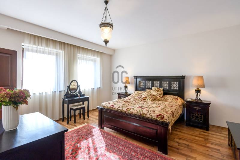 Sopron egyik legkedveltebb részén, az Ágfalvi úti lakóparkban kerül eladásra egy 2010-ben épült, 1238 m²-es telken álló, különleges családi ház, amely az igényesség és a gondosan megtervezett élettér tökéletes példája.A HÁZ JELLEMZŐI- nettó lakóterület: 260 m²- építés éve: 2010- téglaépítésű, minőségi anyagokból- alumínium borítású fa ablakok, tömör kőrisfa beltéri ajtók- kovácsoltvas korlát az emeletre vezető lépcsőn – igazi éke a háznak- fűtés: Vaillant turbó gázkazán, padló- és falfűtés helyiségenként szabályozhatóan- melegvíz ellátás: gázkazán + napkollektor (250 l puffertartály)- nagy teljesítményű klíma az egész ház hűtéséreTÁGAS VILÁGOS BELSŐ TEREKA földszint központja a nappali–étkező–konyha egysége, ahol a természetes fény, a fa meleg tónusai és a finom részletek együttesen teremtenek meghitt, elegáns hangulatot.A tömör fából készült, gránit munkalapos konyhabútor nemcsak stílusos, de a minőség garanciája is.A nappali közvetlen teraszkapcsolattal rendelkezik, így a kert szinte a lakótér folytatása.KÉNYELMES, ÁTGONDOLT EMELETI ELRENDEZÉSAz emeleten HÁROM HÁLÓSZOBA kapott helyet:-a szülői lakrész saját fürdőszobával és gardróbbal,- másik két szoba közös fürdőt használ,- a tágas közlekedő kellemes, világos teret biztosít.ALSÓ SZINT – kényelem és praktikusságA földszinten helyet kapott:- egy vendég- vagy dolgozószoba,- egy tágas háztartási helyiség szaunával, tusolóval és WC-vel,- valamint egy duplagarázs elektromos garázskapukkal.Minden itt van, ami a mindennapi kényelmet szolgálja – logikus elrendezésben, minőségi kivitelezésben.A KERT - MAGA A NYUGALOMAz 1238 m²-es, parkosított kert gondosan megkomponált:- robotfűnyíró,- Wellis jakuzzi - barabás téglából épített grillező és kerti konyha,- árnyas pihenősarok, ahol a zöld növények között valódi kikapcsolódás várja.- kerti faházEz a kert nem csupán szép — élettér, ahol minden nap egy kicsit nyaralás.Egy ház, ahol a részletek számítanak.Ez az otthon nem hivalkodó, hanem elegánsan kifinomult.Minden anyag, minden vonal és minden szín azt sugallja:itt a nyugalom, a minőség és a természet közelsége egyensúlyban van.ELHELYEZKEDÉSKönnyen megközelíthető kertvárosi környezetA város infrastruktúrája, iskolák, bevásárlási lehetőségek és zöld területek egyaránt elérhetők.KÖLTÖZÉSA költözés gyorsan megoldható.Ha egy olyan otthont keres, amely egyszerre sugároz eleganciát, kényelmet és természetes harmóniát,akkor ez a ház Sopronban, az Ágfalvi úti lakóparkban Önre vár.Hitelre van szüksége?Az Otthon Centrum az ország egyik legnagyobb és legmegbízhatóbb hitelközvetítőjeként, teljes körű és díjmentes hitelügyintézéssel, biztosításkötéssel áll rendelkezésére!Kérje személyre szabott ajánlatunkat Kollégáinktól!