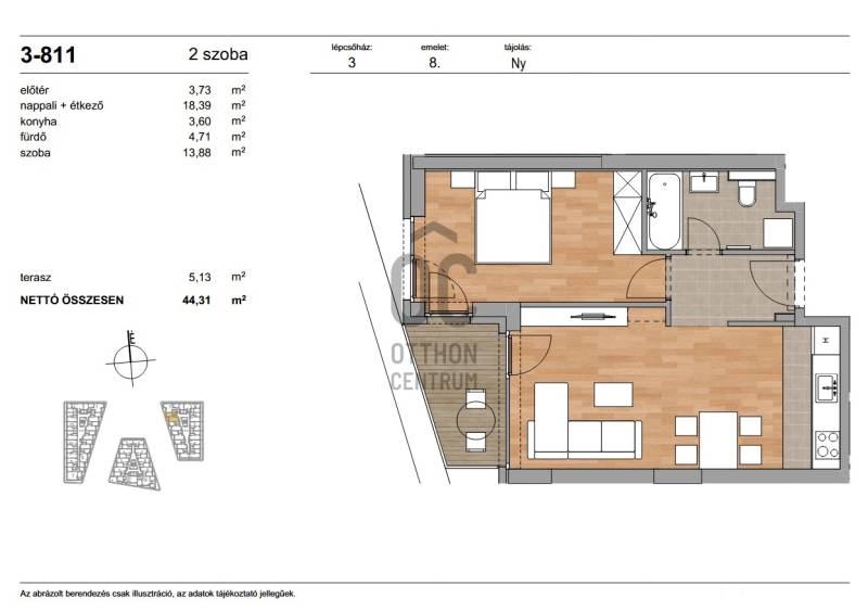 Az ingatlan nettó alapterülete 44,31 m² + 5,13 m² erkély.Projekt bemutatásaOtt, ahol a természet és a városi élet találkozik.A budai Duna-parton megvalósuló új prémium fejlesztés a vízparti élet luxusát kínálja modern, elegáns formában.Tágas teraszok, lenyűgöző panoráma, fenntartható műszaki megoldások – mindez néhány lépésre a folyótól, Buda dinamikusan fejlődő negyedében.A budai életstílus új dimenziójaEz a lakópark nem csupán otthon, hanem életérzés.A teraszról a Duna látványa, a vízpart halk morajlása és a modern városi környezet tökéletes harmóniája adja az itt élők mindennapjainak különleges atmoszféráját.A projekt két ütemben valósul meg:- I. ütem: három elegáns, 9 emeletes épület- II. ütem: három közvetlen vízparti épület, exkluzív kilátással és saját kikötővelKIVÉTELES LOKÁCIÓ – tökéletes elérhetőség- XI. kerület, közvetlenül a Duna-parton- Savoya Park: pár perc sétára- Etele Plaza: 10 perc autóval- Kopaszi-gát: mindössze 4 km- Móricz Zsigmond körtér: 13 perc busszal- Villamos- és buszmegállók néhány perc sétára, minden szolgáltatás – iskolák, éttermek, bevásárlási lehetőségek – elérhető közelségben.A környék Buda egyik leggyorsabban fejlődő területe, modern infrastruktúrával, vízparti sétányokkal és zöld parkokkal – a város új, természetközeli központja születik itt.Kortárs építészet – időtálló eleganciaA lakóépületek modern, letisztult megjelenése a Duna vonalvezetését idézi.A zöldtetők, parkosított udvarok és természetes anyaghasználat az épített környezet és a természet összhangját teremti meg.- 2 szintes mélygarázs, elektromos autótöltési előkészítéssel- Tágas, napfényes teraszok minden lakáshoz- Háromrétegű nyílászárók, prémium hő- és hangszigeteléssel- WPC teraszburkolatok, korszerű hőhídmentes homlokzati rendszer- Közösségi zöldterek és pihenőkertekMŰSZAKI TARTALOM – a jövő technológiája ma- A fejlesztés kiemelt hangsúlyt helyez az energiahatékonyságra és a komfortérzetre:- Környezetbarát levegős hőszivattyús rendszer- Mennyezeti hűtés-fűtés, helyiségenként szabályozható termosztátokkal- Okosvezérlés, távvezérelhető hőmérséklet-szabályozás- Zöldtető és hővisszanyerős szellőzés- Egyedi mérésű energiafogyasztás minden lakásbanA lakások belső kialakítása válogatott anyagkollekcióból választható, a klasszikus elegancia és a modern minimalizmus stílusában.Élmény, ami túlmutat az otthon fogalmánA lakópark lakói a vízpart nyugalmát, a zöld környezet frissességét és a budai életstílus kényelmét élvezhetik nap mint nap.A saját klubhelyiség és kikötő a vízparti élet exkluzív élményét teszi teljessé.Ez az a hely, ahol a mindennapok is ünneppé válnak.VÁRHATÓ ÁTADÁS:Szerkezetkész: 2027. februárKulcsrakész: 2028. decemberA Duna-part új fejezete most íródik.Itt nem csupán lakást vásárol – hanem egy életstílust, ami Buda jövőjét határozza meg.