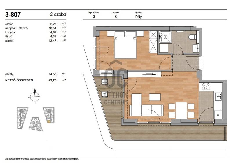 Az ingatlan nettó alapterülete 43,28 m² + 14,55 m² erkély.Projekt bemutatásaOtt, ahol a természet és a városi élet találkozik.A budai Duna-parton megvalósuló új prémium fejlesztés a vízparti élet luxusát kínálja modern, elegáns formában.Tágas teraszok, lenyűgöző panoráma, fenntartható műszaki megoldások – mindez néhány lépésre a folyótól, Buda dinamikusan fejlődő negyedében.A budai életstílus új dimenziójaEz a lakópark nem csupán otthon, hanem életérzés.A teraszról a Duna látványa, a vízpart halk morajlása és a modern városi környezet tökéletes harmóniája adja az itt élők mindennapjainak különleges atmoszféráját.A projekt két ütemben valósul meg:- I. ütem: három elegáns, 9 emeletes épület- II. ütem: három közvetlen vízparti épület, exkluzív kilátással és saját kikötővelKIVÉTELES LOKÁCIÓ – tökéletes elérhetőség- XI. kerület, közvetlenül a Duna-parton- Savoya Park: pár perc sétára- Etele Plaza: 10 perc autóval- Kopaszi-gát: mindössze 4 km- Móricz Zsigmond körtér: 13 perc busszal- Villamos- és buszmegállók néhány perc sétára, minden szolgáltatás – iskolák, éttermek, bevásárlási lehetőségek – elérhető közelségben.A környék Buda egyik leggyorsabban fejlődő területe, modern infrastruktúrával, vízparti sétányokkal és zöld parkokkal – a város új, természetközeli központja születik itt.Kortárs építészet – időtálló eleganciaA lakóépületek modern, letisztult megjelenése a Duna vonalvezetését idézi.A zöldtetők, parkosított udvarok és természetes anyaghasználat az épített környezet és a természet összhangját teremti meg.- 2 szintes mélygarázs, elektromos autótöltési előkészítéssel- Tágas, napfényes teraszok minden lakáshoz- Háromrétegű nyílászárók, prémium hő- és hangszigeteléssel- WPC teraszburkolatok, korszerű hőhídmentes homlokzati rendszer- Közösségi zöldterek és pihenőkertekMŰSZAKI TARTALOM – a jövő technológiája ma- A fejlesztés kiemelt hangsúlyt helyez az energiahatékonyságra és a komfortérzetre:- Környezetbarát levegős hőszivattyús rendszer- Mennyezeti hűtés-fűtés, helyiségenként szabályozható termosztátokkal- Okosvezérlés, távvezérelhető hőmérséklet-szabályozás- Zöldtető és hővisszanyerős szellőzés- Egyedi mérésű energiafogyasztás minden lakásbanA lakások belső kialakítása válogatott anyagkollekcióból választható, a klasszikus elegancia és a modern minimalizmus stílusában.Élmény, ami túlmutat az otthon fogalmánA lakópark lakói a vízpart nyugalmát, a zöld környezet frissességét és a budai életstílus kényelmét élvezhetik nap mint nap.A saját klubhelyiség és kikötő a vízparti élet exkluzív élményét teszi teljessé.Ez az a hely, ahol a mindennapok is ünneppé válnak.VÁRHATÓ ÁTADÁS:Szerkezetkész: 2027. februárKulcsrakész: 2028. decemberA Duna-part új fejezete most íródik.Itt nem csupán lakást vásárol – hanem egy életstílust, ami Buda jövőjét határozza meg.