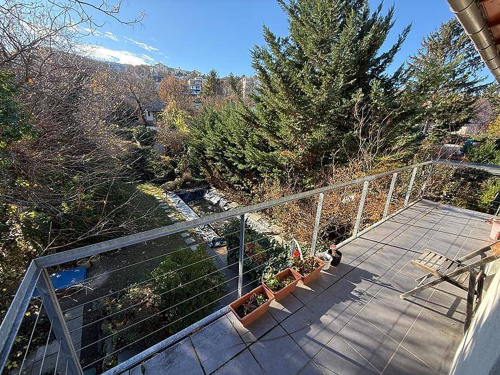 Kizárólag Irodánk kínálatában!Eladásra kínálunk egy csendes, jó állapotú, nettó 159 nm-es + 15 nm-es teraszos, belső kétszintes, világos, panorámás lakást Németvölgy frekventált részén, a Fürj utcában.A szigetelt ház 2 lakásos, 3 szintes, amelyből az eladásra kínált lakás a felső két szinten helyezkedik el. A lakás 6 szobával rendelkezik, amelyből az első emeleten található egy nappali + 2 szoba, a többi szoba a második emeleten helyezkedik el.Az első emeleten található egy 4 nm-es és egy 11 nm-es terasz (utóbbi bővíthető igény szerint), valamint a 2. emeleten két franciaerkély is.Belmagassága 266 cm.A lakás külön bejáraton át megközelíthető a kertből, illetve a garázsból is.Tartozik hozzá egy kétbeállásos garázs, mely 16 nm, valamint egy udvari beálló. Ezeket kötelező megvásárolni, értékük összesen 20M Ft.A ház kertje közös használatú.Elhelyezkedése kiváló: a közelben bevásárlási lehetőségek, iskolák, óvodák, parkok és tömegközlekedési megállók találhatók. A környék ideális mindazoknak, akik a város közelségét, de a zöld, csendes környezetet részesítik előnyben.Kérdés esetén keressen minket bizalommal!Irodánk ingyenes hiteltanácsadással áll ügyfeleink rendelkezésére.Vevőink számára a közvetítés díjmentes.A hirdetésben szereplő adatok tájékoztató jellegűek.