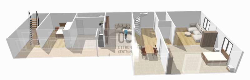 Budapest XVII. kerületének csendes, kertvárosias részén eladó egy több generáció együttélésére is kiválóan alkalmas, 211 nm-es, 6 szobás, kétlakásos családi ház, amely egy 1639 négyzetméteres, sokoldalúan hasznosítható telken helyezkedik el. Az első lakrész földszintjén két külön helyiség található: az egyik szobaként funkcionál, a másikat jelenleg üzlethelyiségként használják, így vállalkozási tevékenységre is ideális. Ezen a szinten kapott helyet a konyha, míg az emeleten két hálószoba és egy fürdőszoba található.A második, kisebbik lakrész teljes értékű otthonként működik, egy hálószobával, nappalival, konyhával és fürdőszobával. Ez a lakrész klimatizált, fűtéséről cirkó gondoskodik, amely kényelmes és energiatakarékos megoldást kínál. A két lakrész jelenleg belső átjárással összekapcsolt, de igény esetén könnyen különválasztható.Az épület 12 cm vastag külső szigeteléssel rendelkezik. A hatalmas telek és a ház kialakítása számos pakolási és tárolási lehetőséget biztosít, a kertben és a házon belül egyaránt. Kocsibeálló, garázs és több külső tároló is rendelkezésre áll, így akár több autó, szerszám vagy felszerelés kényelmesen elhelyezhető.A környék infrastruktúrája kiváló: a közelben iskola, óvoda, bevásárlási lehetőségek, sportolási lehetőségek és buszmegálló is megtalálhatók, így a mindennapi élet minden szempontból kényelmesen megoldható. Ez az ingatlan ideális választás lehet nagycsaládosoknak, összeköltözőknek, vagy akár vállalkozással egybekötött otthon kialakításához is.A ház megvásárlásához a megfelelő önerővel „már rendelkező”, de ezenfelül akár ***banki hitelfelvétellel, akár *** CSOK+ , akár ***lakáskassza megtakarítással és akár a ***babaváró program keretében felvehető / felhasználható pénzösszegből vásárló személyek megkeresését is szeretettel várom!Ha a leírtak és a látottak alapján felkeltettem az érdeklődését, keressen bizalommal akár hétvégén is!***Az igénylési / felhasználási feltételekkel kapcsolatban, valamint ezek ügyintézésben is, az Otthon Centrum hitelközvetítő munkatársával együtt, készséggel állok az Ön szíves rendelkezésére!