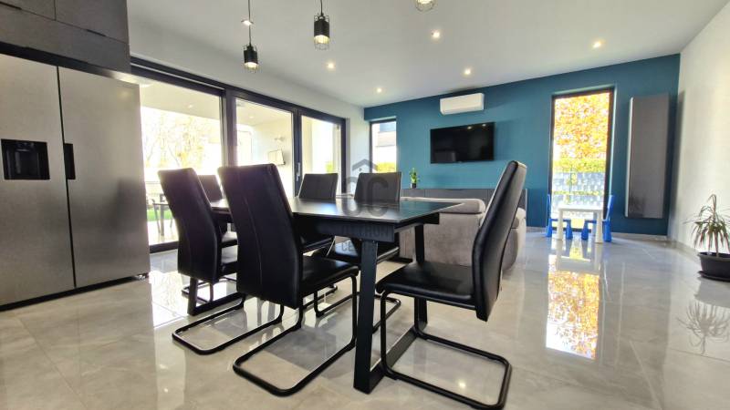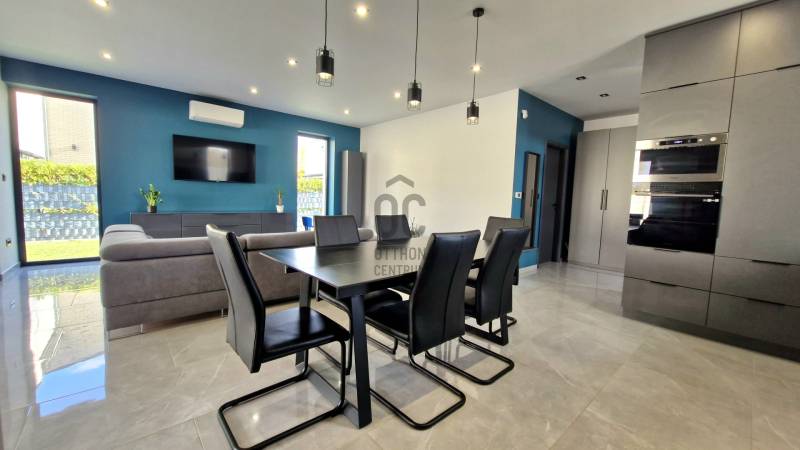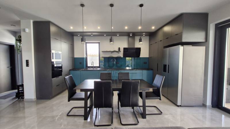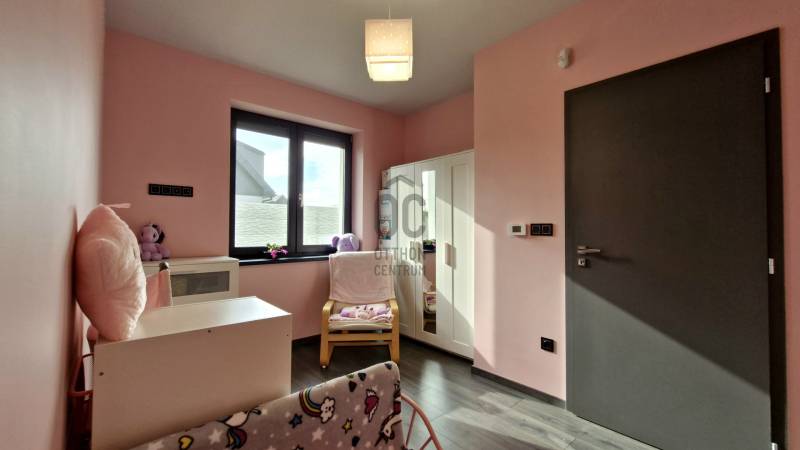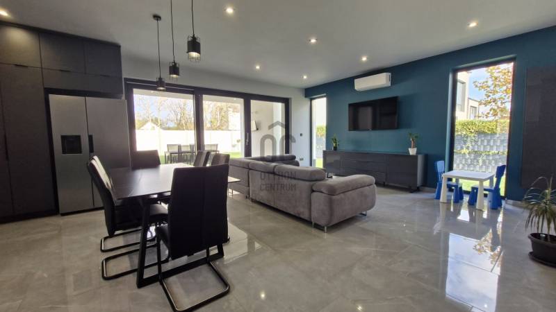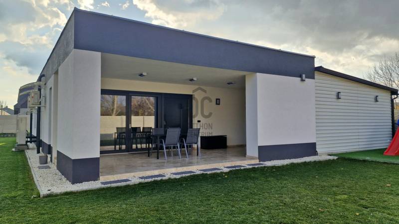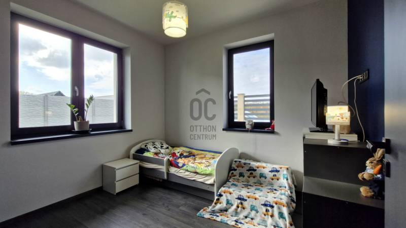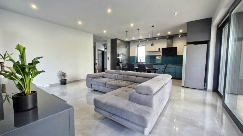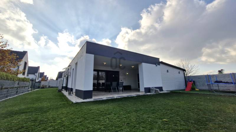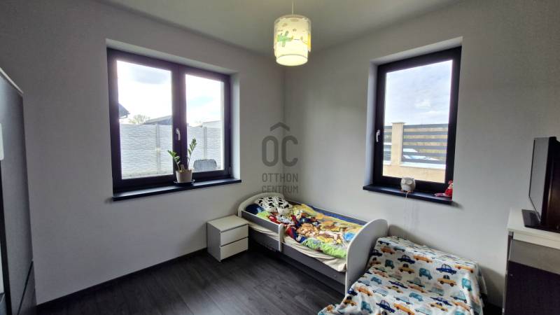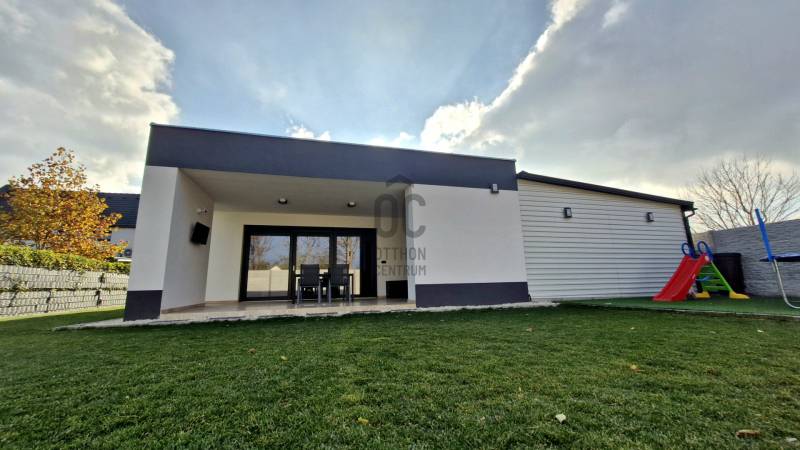 Szeretne egy új építésű házat, de nem akar éveket várni a kivitelezésre? Zsámbék legfelkapottabb, új parcellázású részén eladó ez a minden igényt kielégítő, 2023-ban átadott, gyakorlatilag érintetlen prémium családi ház.Ez az ingatlan nem kompromisszumokról, hanem a tökéletes kényelemről és a zéró rezsiről szól. AZ INGATLAN SZÁMOKBANHáz: 109 m² nettó lakótér | Nappali + 4 hálószoba | 2 fürdőszoba.Telek: 715 m² | Gondozásmentes, parkosított.Garázs: 42 m² (kétállásos) + 3 udvari beálló.Terasz: 29 m² fedett relaxációs zóna.PRÉMIUM ÉLETÉRZÉS ÉS ELRENDEZÉS A tágas amerikai konyhás nappali mellett 4 teljes értékű hálószoba kapott helyet. A szülői háló saját fürdőszobával biztosítja az intim szférát. Az enteriőrt az elegáns antracit nyílászárók és beltéri ajtók, valamint a tágas terek teszik modernné és időtállóvá.TECHNOLÓGIA ÉS ENERGIAHATÉKONYSÁG (Fenntartás: Szinte ingyen!) A ház műszaki tartalma messze túlmutat a piaci átlagon:Falazat: 30-as Porotherm + 20 cm grafitos homlokzati szigetelés + 30 cm födémszigetelés.Gépészet: Panasonic hőszivattyú (padlófűtés + HMV) helyiségenkénti vezérléssel.Vízlágyító: Központi rendszer védi a gépészetet és csaptelepeket a vízkőtől.Nyílászárók: 3 rétegű üvegezés, elektromos alumínium redőnyökkel és pliszé szúnyoghálóval.Hűtés: 2 db nagyteljesítményű klíma gondoskodik a nyári melegről.KERT – AHOL A PIHENÉSÉ A FŐSZEREP Felejtse el a hétvégi fűnyírást! A kertet robotfűnyíró és automata öntözőrendszer tartja karban.Travertin mészkővel burkolt kerítés, antracit alumínium betétekkel.Játszótér / Medence előkészítés: 30 m² minőségi műfű.Kerti partikhoz: 5 m² térkövezett tűzrakóhely.Külön kerti tároló a szerszámoknak.BIZTONSÁG: Kiépített kamerarendszer és riasztó védi értékeit.KINEK AJÁNLOM? Olyan családoknak, akik a kompromisszummentes minőséget keresik, és értékelik, hogy egy új háznál nem kell a kivitelezőkkel küzdeni – csak beköltözni és élvezni a luxust.Az ingatlan tehermentes, rövid határidővel költözhető. Hívjon még ma, mert ez a minőség ezen a környéken ritka kincs!