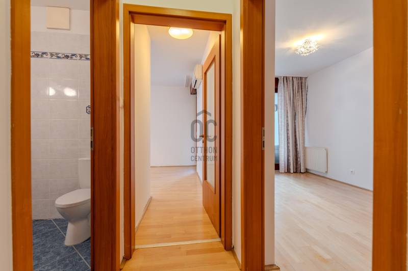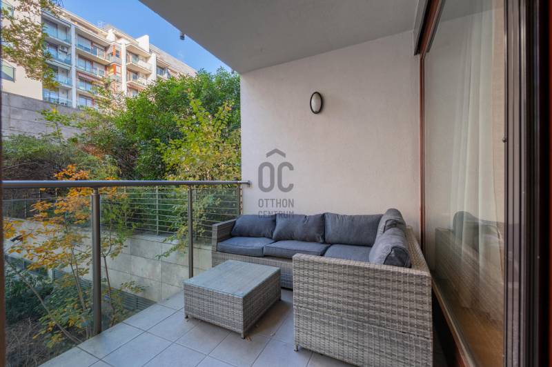 Exkluzív Otthon a Díjnyertes \"Római Kert\" Lakóparkban – Újlipótváros Szívében! (1132 Budapest, Visegrádi út 80.)Fedezze fel ezt a kivételes, újszerű (2022) ingatlant Budapest szívében, az Újlipótvárosban, ahol a modern, magas minőségű életstílus találkozik a csendes lakóparki környezet nyugalmával és a kiemelkedő infrastruktúrával!A Lakópark Előnyei és a Prémium KörnyezetA lakás egy 2002-ben átadott, az Autóker által épített \"Római Kert\" lakóparkban található. Ez az épületegyüttes:Többszörös díjnyertes: Kiemelkedő építészeti megoldásai és gyönyörű, gondozott zöldterülete miatt vált elismertté.Zárt és Biztonságos: A lakók kényelmét és biztonságát 24 órás portaszolgálat garantálja.Gondozott, Belső Park: A házak által körbefogott területen egy különlegesen szépen ápolt, díjnyertes közös díszkert biztosítja a nyugodt pihenést, távol a város zajától.Teremgarázs: A kényelmes és biztonságos parkolást a ház teremgarázsa teszi lehetővé (a terem garázshely vásárolható/bérelhető a ház más lakóitól).Lakás JellemzőkEz az I. emeleti, 91 négyzetméteres lakás kiváló állapotú, prémium kivitelezésű, ami a beköltözés utáni felújítási munkálatok aggodalmait teljesen kizárja.Elosztás: Négy tágas szoba, mely ideális választás családok, fiatal párok vagy befektetők számára egyaránt.Konyha: Világos nappali amerikai konyhával, modern dizájnnal és beépített bútorokkal.Kényelem: Két fürdőszoba és kettő összesen 14 négyzetméteres, intim terasz, ahonnan élvezheti a környék panorámáját.Fűtés: Házközponti fűtés egyedi méréssel, ami kedvező fűtési költségeket garantál.Kiemelkedő Újlipótvárosi InfrastruktúraAz Újlipótváros kiemelt lokációja nem csupán kényelmes, de kiemelkedően előnyös a mindennapi élet szempontjából is. A környék ellátottsága és a közlekedés tökéletes:Kultúra és Szabadidő: Sétatávolságra található a RaM – Radnóti Miklós Művelődési Központ, amely színházzal, könyvtárral, étteremmel (VakVarjú) és közösségi programokkal várja az itt lakókat.Oktatás: Bölcsőde, óvoda, iskola könnyen elérhető közelségben 1-2 perc séta.Közlekedés: Kiváló tömegközlekedési csomópontok (pl. 4-6-os villamos, M3 metró, 15-ös busz, trolibuszok) gyors elérést biztosítanak a belváros és a város bármely része felé.Szolgáltatások: Számos bolt, étterem, kávézó, gyógyszertár és a Duna-part közelsége teszi teljessé a kényelmet.A lakás akadálymentesített és biztonsági ajtóval felszerelt, így minden szempontból garantálja a gondtalan és kényelmes otthont.Ne maradjon le erről a páratlan lehetőségről! Tekintse meg személyesen, és tapasztalja meg a \"Római Kert\" lakópark nyújtotta prémium életérzést!