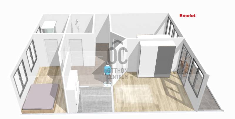 Eladóvá vált Fót, egyik legszebb részén, Királydombon, egy bruttó 110 nm-es, nettó 102 nm-es, 4 szobával+1 nappalival rendelkező, 2 fürdőszobával +1 mellékhelyiséggel, kamrával kiegészített, 200 nm-es telken húzódó, 2 teremgarázshellyel+1 nyitott kerítésen kívüli parkolóhellyel, 3 db tárolóval rendelkező, középső sorházi lakás!Az ingatlan 2011-ben épült, jelenlegi tulajdonosa és családja, 2017 óta lakják. A kert, évszaknak megfelelően, folyamatosan karbantartott, rendezett, kiépített locsoló rendszerrel rendelkezik, de jelenleg ez nincsen használva. A kert végében kialakításra került egy kis fedett sütögetőhely, ami ideális választás lehet családi beszélgetésekhez. Kiemelendő, hogy a kerti szerszámokat nem a lakáson kell keresztül cipelni, mivel a garázs, ami a teljes ház alatt húzódik, átjárást biztosít a kert felé. Számos pakolási, raktározási, tárolási lehetőséggel kiegészítve.A házba belépve, egy ideális méretű előszobába érkezünk, ahonnan egy vendégmosdó nyílik, jelenleg, mosókonyhának van használva, de egy újabb, zuhanyzós fürdőszobát is ki lehet belőle alakítani. Tovább haladván, az amerikaikonyhás-nappaliba érkezünk, ami közvetlen terasz kapcsolattal rendelkezik. A lépcső alatti területet kamraként hasznosítják, így a befőtteknek is van helye, Sok sorházi lakással ellentétben, itt a földszinten is van egy szoba, ami jelenleg dolgozószobának van kialakítva, de akár vendégszobának, hálószobának is használható. Az emeleten, a szülöi hálószoba, saját, zuhanyzós fürdőszobával rendelkezik, valamint a gyerekeknek is kialakítottak egy kádas fürdőszobát. A két másik szoba, közel azonos méretű, közös erkéllyel rendelkeznek. A bútorozást megkönnyítve, egy gardrób is helyet kapott előtérben. A kellemes hőérzetről gázcirkó gondoskodik, továbbá egy-egy db klíma került felszerelésre. A nyílászárók redőnnyel, illetve szúnyoghálóval ellátottak.A környék barátságos, családias, a közelben számos bevásárlási lehetőség, iskola, óvoda, bölcsőde, orvosi rendelő található, továbbá buszmegálló, vasútállomás 10 perc alatt elérhető.Ajánlanám ezt az ingatlant olyanoknak, akik nem szeretnének nagyobb felújítással foglalkozni, valamint Fót egyik legszebb, családias részén élnének, valamint olyanoknak, akik nem szeretnének órákat utazni a munkahelyükre.A ház megvásárlásához a megfelelő önerővel „már rendelkező”, de ezenfelül akár ***banki hitelfelvétellel, akár *** CSOK+ , akár ***lakáskassza megtakarítással és akár a ***babaváró program keretében felvehető / felhasználható pénzösszegből vásárló személyek megkeresését is szeretettel várom!Ha a leírtak és a látottak alapján felkeltettem az érdeklődését, keressen bizalommal akár hétvégén is!***Az igénylési / felhasználási feltételekkel kapcsolatban, valamint ezek ügyintézésben is, az Otthon Centrum hitelközvetítő munkatársával együtt, készséggel állok az Ön szíves rendelkezésére!