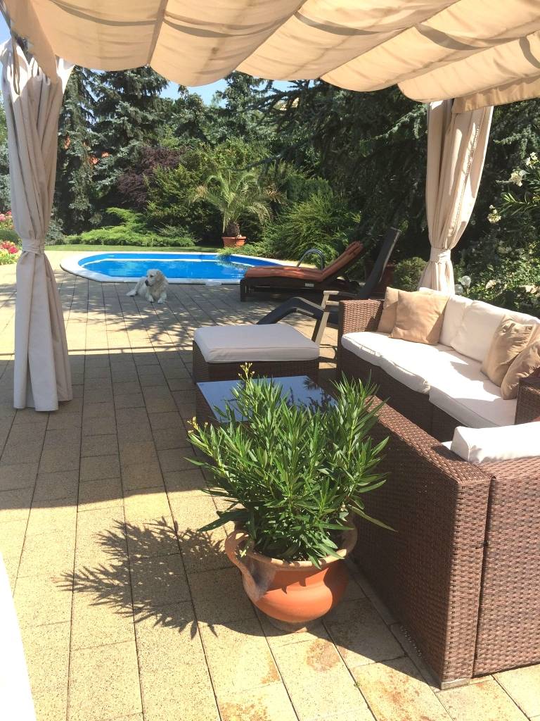 CSALÁDIHÁZ ÉRD-GYÖRGYLIGET KERTVÁROSI RÉSZÉN – MODERN GÉPÉSZETTEL - MINIMÁLIS REZSIKÖLTSÉGGEL! Csendes, mégis remekül megközelíthető kertvárosi utcában eladó egy impozáns, 3 szintes, nettó ~200 m²-es, folyamatosan karbantartott családi ház érett kerttel, medencével és különálló dupla garázzsal.Az ingatlant a tulajdonosok szakemberekként saját részre építették, ennek megfelelően kiemelkedő a műszaki színvonala és a gondosság, amellyel karbantartották.Főbb adatokTelek: 1.154 m²Bruttó alapterület: 330 m²Lakótér: ~200 m²Pinceszint / félszuterén: 125 m²Különálló, kétállásos garázs A parkosított kertben automata locsolórendszer és medence található – igazi kertvárosi oázis érett növényállománnyal. ⚡ KIEMELT ELŐNY: ÚJ hőszivattyú + napelem – lakás szintű rezsivel!2023-ban telepített 18 kW Panasonic hőszivattyú2024-ben telepített 8 kW napelem rendszer ☀️ A rezsiköltség nagyságrendileg egy átlagos lakás rezsijével azonos – jelentősen alacsonyabb, mint egy családi háznál megszokott!️ Műszaki tartalom (kiemelkedő állapot!)Porotherm 30-as tégla falazatHomlokzati hőszigetelés: 5 cm + 3 cm vakolatTetőtér/padlás hőszigetelés: 10 + 5 cm és 10 + 10 cmSofa és egyedi fa nyílászárók – részben új, 3 rétegű üvegezéssel (2022)Új burkolatok (5 éve), felújított tetőtéri fürdőPadlófűtés a földszinten és a tetőtérbenKlimatizált helyiségek ❄️Egyedi tervezésű konyhabútor, beépített gépekkelBeépített bútorok több helyiségbenA belmagasság átlagosan 2,8 m, a nappaliban pedig látványos 5,5 méteres belső tér teremti meg a tágas, elegáns hangulatot. ✨ Lokáció – minden percek alatt elérhetőÓvoda, iskola, középiskola, tömegközlekedés: 5 percen belülÉrd központja: pár perc autóval Kinek ajánljuk?Ideális nagycsaládosoknak, illetve mindazoknak, akikalacsony rezsit,modern gépészetet,tágas tereket,gondozott kertet,és minőségi kivitelezést keresnek.GDN ID: 390272