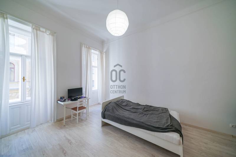 A körúthoz közel, mégis csendes, hangulatos utcában található ez a 63 m²-es, első emeleti otthon, amelyet két éve teljes körűen és igényesen felújítottak. A klasszikus épület rendezett lépcsőházából léphetünk be a lakásba, amely a modern kényelem és az egyszerűség tökéletes ötvözete.A tágas, étkező-konyháa a lakás központja lehet, amely nyugati tájolásának köszönhetően egész nap világos és barátságos hangulatú. Innen nyílik a fürdőszoba, a külön WC, valamint egy praktikus mosókonyha. A két keleti fekvésű hálószoba a csendes, rendezett utcára néz, biztosítva a nyugodt pihenést.A lakás nagy belmagasságú (390cm), levegős terekkel és elegáns burkolatokkal rendelkezik. Teljesen berendezve eladó, a konyhai gépek garanciálisak, a fűtés modern elektromos panelekkel, a melegvíz energiatakarékos bojlerrel megoldott. A pincében egy 6 m²-es tárolóhelyiség is tartozik hozzá.A társasház és az udvar rendezett, a lakóközösség barátságos. A környék dinamikusan fejlődik – az utcában két új szálloda épül, a közelben park, üzletek és számos szolgáltatás található.Kiváló választás mind saját otthonnak, mind befektetésnek!