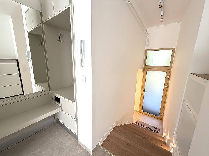 Pasaréti tértől pár percre, egyirányú kis mellékutcában, 8 lakásos házban eladó egy belső 2 szintes frissen, magas színvonalon felújított, DNY-i és DK-i fekvésű lakás. A lakás kívülről 15cm dryvit hőszigetelést kapott. A felújítás során 3 rétegű nyílászárók kerültek be, melyeket a távvezérelhető, hőszigetelt, alumínium redőnyök egészítenek ki. Tovább fokozza a minőségérzetet az alumínium keretes, üvegezett bejárati ajtó. A felső szinten egy amerikai konyhás nappali, hatalmas faltól-falig érő ablakokkal, egy hálószoba és egy fürdőszoba került kialakításra. A nappaliból nyílik a 6nm-es erkély, mely üvegkorlátot kapott. Minden bútor, beleértve a gépesített konyhabútort is, egyedi tervek alapján készültek, kifejezetten ide. Az alsó szinten egy egyedi szoba kapott helyet. Egyediségét a beépített zuhanykabin és az infraszauna adja. Ezenkívül egy külön wc, egy tároló és a garázs. A garázs parkettázott és szekcionált motoros kapuval ellátott, melynek vételára 10M Ft, kötelezően megvásárolandó. Az ingatlan fűtéséről egy Bosch kondenzációs kazán gondoskodik, a felső szinten padlófűtéssel, az alsó szinten pedig radiátoros fűtéssel. Szintén bekerült egy ultrahangos vízlágyító is. Mindkét szinten prémium minőségű burkolatok és szaniterek kerültek kiválasztásra és le-, illetve behelyezésre. Bevásárlási lehetőség, tömegközlekedés, gyógyszertár, posta pár perc sétával elérhető.