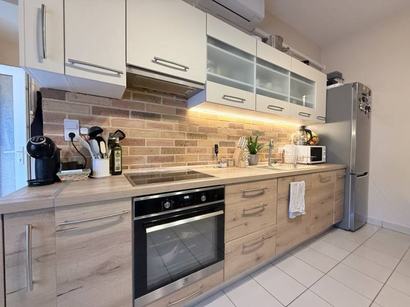 Pécel központjához közel, a Pesti úton eladó egy felújított, saját kerttel rendelkező ikerházfél.A bruttó 56 m²-es (nettó 52,75 m²) házhoz egy 25,6 m²-es, 70%-ban fedett terasz, egy 17,9 m²-es (nettó 7 m² 190 cm feletti belmagasággal) tetőtéri egy légterű helyiség, valamint 186 m² kizárólagos használatú telekrész tartozik. A kert teljes mértékben leválasztható, a saját területen két autó parkolása megoldott. A telek végében a Rákos-patak található, mely természetes, nyugodt környezetet biztosít.A vályogfalazatú ház 2017-ben teljes felújításon esett át (15 cm szigetelés, műanyag nyílászárók, új burkolatok), 2022-ben pedig további korszerűsítések történtek: a nappali és a konyha egybenyitásra került, új padlóburkolat és dísztégla fal került a nappaliba, a nyílászárók redőnyt és szúnyoghálót kaptak, a konyhába pedig új, minőségi konyhabútor és teljes Bosch–Electrolux gépészet került beépítésre.A konyha beépített gépei:– Bosch indukciós főzőlap (boost, időzítő, kifutásgátló)– Bosch mosogatógép (silent, eco, auto, 14 teríték)– Electrolux sütő (pirolitikus tisztítás, gőz funkció, 300°C)– Electrolux erős elszívóHelyiségek:– Nappali: 16,7 m²– Konyha: 14 m²– Fürdő: 2,33 m²– Előszoba: 5,3 m²– Tetőtér: 17,9 m²– Terasz: 25 m²– Saját kert: 140 m²Műszaki tartalom:– Fűtés és HMV: kondenzációs gázkazán– Radiátoros hőleadás– Hűtő–fűtő klíma– Réz villamos hálózat (32A)– Elektromos kapu– Riasztórendszer– Tároló / spejz a lépcső alatt– Kerti tároló és szigetelt medencealapA telek földmérő által készített vázrajz szerinti, ügyvédi használati megosztással rendelkezik. A lakók kulturáltak, barátságosak, egymás életét nem zavarják.Rezsiköltség: kb. 30.000 Ft/hó.Részletes környékleírás – minden egy karnyújtásraA ház Pécel központjához közel, a Pesti úton helyezkedik el.– 169E buszmegálló közvetlenül a ház előtt– Kisbolt a házzal szemben– Penny, Rossmann és a városközpont 2 perc autóval, 10 perc gyalog– Vasútállomás 10 perc sétával elérhető (Budapest 15–20 perc vonattal)– M0 autóút mindössze 2 percre– A telek végén gyalog le lehet menni a Rákos-patakhoz, kellemes természetközeli hangulatot biztosítvaINGYENES hitel tanácsadás,Otthon Start, CSOK Plusz ügyintézés!BANKFÜGGETLEN hitelcentrumunk az összes elérhető bank és hitelintézet ajánlatát versenyezteti az Ön kedvéért, ráadásul DÍJMENTESEN.- Egyedi, bankfiókban nem elérhető kamat- és díjkedvezmények- Hitelképesség vizsgálat- Idő, energia és pénz megtakarítás- Teljes hivatali ügyintézésAmennyiben hirdetésem felkeltette az érdeklődését vagy egyéb információra van szüksége hívjon bizalommal!