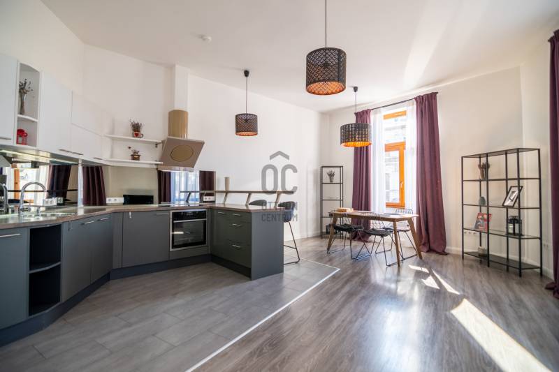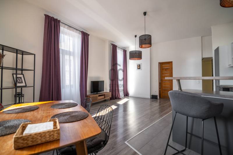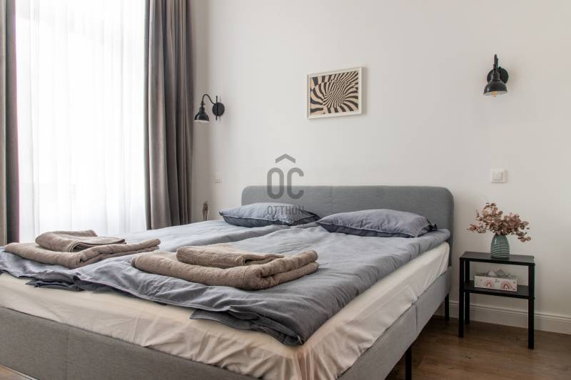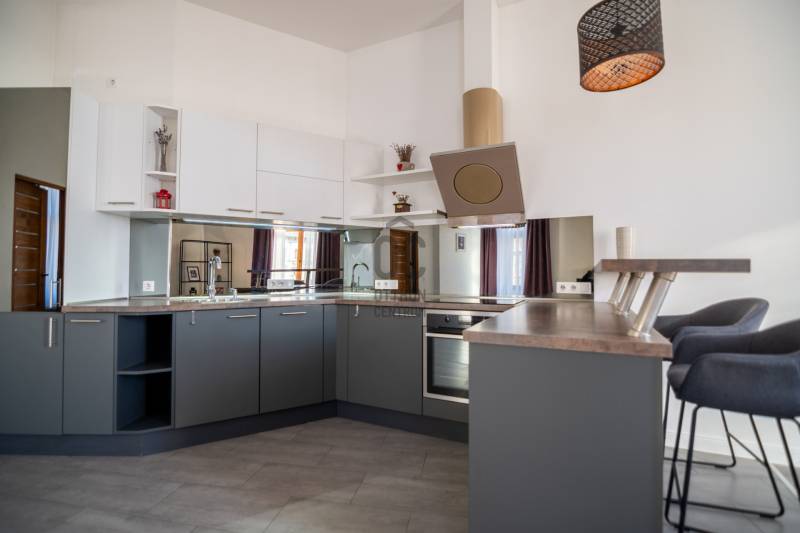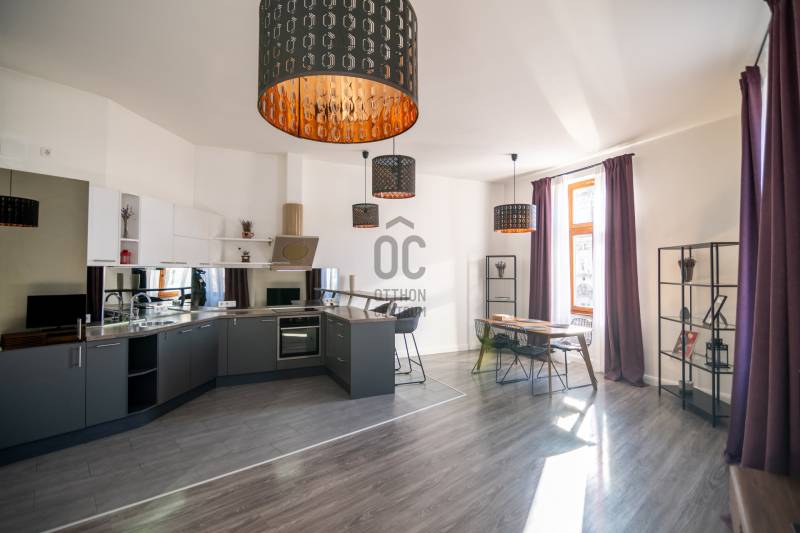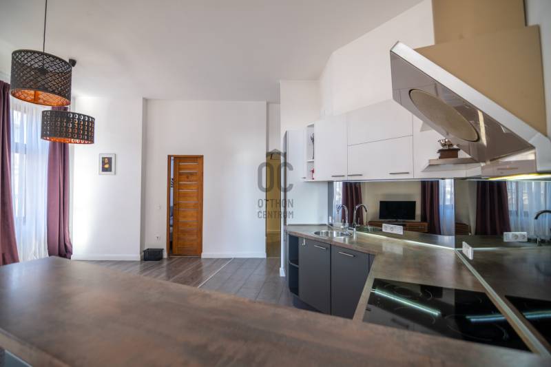 MIÉRT EZT VÁLASSZA•Két különnyíló hálószoba és tágas amerikai konyhás nappali, modern kialakítással•Pazar kilátás a Ferenc körútra, Petőfi hídra és a Dunára•Luxus kivitelű konyha Siemens prémium gépekkel•Geo-áramos padló- és mennyezetfűtés, fal- és plafonhűtés a legkorszerűbb technológiával•Rendkívül alacsony fenntartási költségek – várható összes rezsi: 13 ezer Ft/hó plusz közös költségINGATLANA lakás a Boráros tértől mindössze 80 méterre található, egy kulturált, szépen karbantartott épület harmadik emeletén. Az ingatlan 2 hálószobával rendelkezik, melyek különnyílnak a tágas, amerikai konyhás nappaliból. A modern dizájn és a térkihasználás kiemelkedően jó, akár egy új építésű lakásnál. A lakás 2019-ben került teljeskörűen felújításra, melynek során az elaktromos hálozat is felújításra került és új energiahatékony fűtésrendszer is kialakításra került.A luxus kialakítású konyha minden részletében átgondolt: Siemens prémium kategóriás gépek gondoskodnak a praktikus elrendezésről, a harmonikus színvilág pedig stílusos megjelenést biztosít. A lakás bőséges természetes fényt kap, azonban a csend is garantált, mivel az új nyílászárók 3-rétegű üvegezéssel rendelkeznek, és a lakás minden oldalról kiváló hő- és hangszigetelést kapott. A jobb térkihasználás jegyében egy padlás / tároló is kialakításra került az előszoba felett.KÖRNYÉKA lakás Budapest 9. kerületében, a belvárosban található, a Mester utca és Ferenc körút sarkán. Közvetlen közelében van a Boráros tér, mindössze 80 méterre. A környék kiváló közlekedési kapcsolatokkal rendelkezik, több busz- és villamosmegálló elérhető néhány percen belül. A Duna közelsége és a lenyűgöző kilátás további vonzerőt biztosít az ingatlannak. A környéken számos szolgáltatás, bevásárlási lehetőség és étterem található.MŰSZAKI ADATOK•Geo-áramos padló- és mennyezetfűtés, fal- és plafonhűtés•3-rétegű hő- és hangszigetelő ablakok•Siemens prémium kategóriás konyhai gépek•Levegős hőszivattyúval működő fűtési és hűtési rendszerKÖLTSÉGEK•Közös költség: 40.040 HUF/hó (~104 EUR/hó)•Átlagos rezsi költség: 13.000 HUF/hó (~34 EUR/hó)PARKOLÁSUtcai parkolás fizetős zónában.Irányár: 129.600.000 HUF