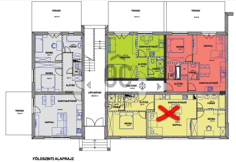 Tisztelt Érdeklődő!Makón, a Liget Lakóparkban jelenleg is zajlanak azok az átalakítási és felújítási munkálatok, amelyek egy teljesen megújult, modern földszinti lakást fognak eredményezni! Ez azt jelenti, hogy Ön lesz az elsők között, aki birtokba veheti ezt a világos, praktikus elrendezésű otthont – vadonatúj állapotban.Az ingatlan a Liget utcában, egy zárt lépcsőházas, 16 lakásos társasházban található. A belváros autóval mindössze 3 perc, kerékpárral 5 perc, gyalog körülbelül 17 perc alatt érhető el, így minden fontos intézmény és szolgáltatás gyorsan megközelíthető. Bevásárlási lehetőségek, óvoda, iskola és buszmegálló néhány száz méterre található, ami a mindennapokat igazán kényelmessé teszi. A társasház földszintjén eladó egy 43 m²-es, téglaépítésű lakás, amely teljeskörű megújuláson megy keresztül. A teljes áram-, víz- és csatornahálózat új, gáz nincs bekötve a lakásba, azonban a fűtés házközponti, gázzal üzemelő rendszerrel történik. A hőfokszabályzós radiátorokon keresztül működő rendszer lakásonként egyedi hőmennyiség-mérőkkel rendelkezik, így minden lakó saját fogyasztása után fizet. A lakás bútorozatlanul, beépített gépek nélkül kerül átadásra, ugyanakkor a nagyobb háztartási gépek szükséges csatlakozásai és kiállásai már kiépítésre kerülnek, így az új tulajdonos saját ízlése szerint alakíthatja ki otthonát.Az ingatlan elrendezése rendkívül praktikus: egy 9,44 m²-es szoba, egy 24,23 m²-es nappali–konyha–étkező, előtér, valamint külön zuhanyzós fürdőszoba és külön WC szolgálja a kényelmet. A nappali közvetlen kapcsolatban áll a 24 m²-es terasszal, amely kellemes plusz életteret biztosít.A szoba, a nappali–konyha–étkező és az előtér laminált padlós burkolatot kap, míg a fürdőszoba és a WC járólappal készül. A burkolatok mintái az irodában megtekinthetők. A melegvíz-ellátást korszerű okosbojler biztosítja, a lakásban 1 darab klímaberendezés kerül kiépítésre, a háromrétegű, hőszigetelt műanyag nyílászárók pedig a korszerű energiafelhasználást segítik. A lakáshoz közös tároló nem tartozik, ugyanakkor a kerékpárok számára udvari tárolási lehetőség biztosított. A parkolás jelenleg díjmentesen az utcán megoldható, azonban saját parkolóhely is vásárolható telekhatáron belül.A lakópark legkésőbb 2026. május 31-én kerül átadásra, ezt követően a lakás akár azonnal költözhető. Így még bőven van idő arra, hogy megtervezze, hogyan szeretné berendezni új otthonát.Az alaprajzokon feltüntetett négyzetméterek tájékoztató jellegűek, a végső adatok kisebb mértékben változhatnak. Hívjon most, és foglaljon időpontot még ma! Legyen az Öné ez a lakás!Részletes műszaki tájékoztatás és a fizetési ütemezés személyesen, az irodánkban elérhető.Makóról bővebben itt: http://mako.hu/makoi-seta/Legyen tisztában pénzügyeivel, mielőtt elkötelezi magát! Ebben díjmentesen az Ön rendelkezésére áll bankfüggetlen hitelközvetítőnk.Vevőinket profi és kedvező díjazású ügyvédi háttérrel is segítjük a szerződéskötés során.#otthoncentrummako #makoiingatlan #eladolakas #makoeladolakas #ingatlan #otthoncentrum #ingatlanpiac #otthon #hagymatikum #forsale #oc #hitel #ocmako #biztositas #realestate #veledmindenlepesnel #homesweethome #ingatlankozvetites #almokatepitunk #koltozes #felujitottlakas