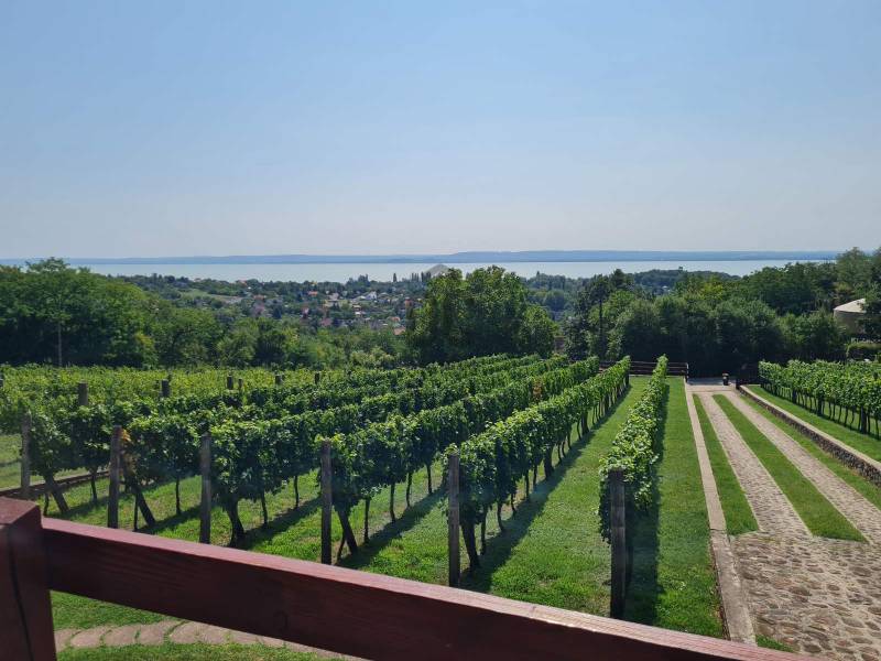 KIEMELT MEGBÍZÁS AZ OTTHON CENTRUM KÍNÁLATÁBAN!Ábrahámhegy festői környezetben a Balaton északi partján a nyugat felől magasodó Örsi hegy és a Tapolcai-medence tanúhegyeinek karéjában fekszik. A táj ősidők óta hazája a szőlőnek és a bornak és a nyári időszakban itt található a környék egyik legkedveltebb fürdőhelye is.A település egyik legmagasabb pontján vált eladóvá ez a különleges kialakítású, Balaton-felvidéki hangulatot árasztó ingatlan a hozzá tartozó 2067 m²-es szőlős területtel.A terület télen-nyáron jól járható úton közelíthető meg, teljesen körbekerített. A telekre betelepített Szürkebarát szőlő folyamatosan gondozott, karbantartott. Az utcafronti részt terméskő kerítés határolja, ez a kőmunka folytatódik az autófeljárón és a támfalakon, valamint a ház egészét is helyi \"vöröskő\" burkolja körbe, így kölcsönözve egyedi és tájba illő hangulatot a birtoknak.A gazdasági épületként bejegyzett ház 2005-ben épült, 3 szinten összesen 146 m²-es hasznos területtel rendelkezik. Az 50 cm-es kő-tégla falakkal rendelkező masszív épület szintjei épületen belül átjárhatóak. A házba hűtő-fűtő klímák kerültek betelepítésre, melyek áramellátását a kiépített napelemrendszer biztosítja, ezenfelül a fűtés a ház alsó- és földszinti részén fatüzelésű kályha használatával is kiegészíthető.A ház szintenkénti elosztása:Alsó szint: konyha, étkező, nappali/ háló, fürdőszoba, tároló, egyedi kialakítású, hangulatos borospinceFöldszint: nappali, étkező, konyha, fürdőszoba, lépcsőház és terasz.Emelet: 3 hálószoba és előszobaA házban riasztórendszer került kiépítésre. Az áram valamint a vezetékes víz bevezetésre került, szennyvíz derítő áll rendelkezésre a szennyvízelvezetéshez. Az esővíz gyűjtésére 2 ciszterna is kialakításra került, melyekből a locsolás könnyedén megoldható.A földszinti részhez kapcsolódó - nyári időszakban plusz életteret biztosító - hatalmas teraszról, de a telekről és a ház egészéből is teljes rálátást kapunk az előttünk elterülő Balaton vizére!A zárt parkolórészen és fedett kocsibeállón több autó egyidejű parkolása is lehetséges.Ajánlom az ingatlant mindazok figyelmébe,akik a \"béke szigetét\" keresik távol a mindennapoktól. A ház tökéletes nyaralónak, turisztikai befektetésként is vonzó lehet és állandó lakhatásra is alkalmas!Amennyiben kérdése merülne fel az ingatlannal kapcsolatban vagy szeretné azt megtekinteni, kérem keressen a megadott elérhetőségek egyikén!