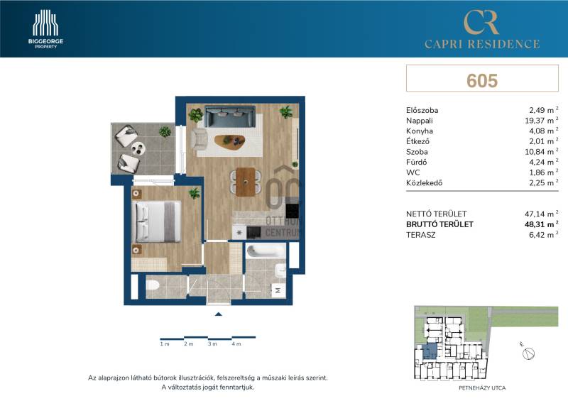 Projekt bemutatásaA Capri Residence a XIII. kerület szívében, a dinamikusan fejlődő Váci út közvetlen közelében valósul meg, amely Budapest egyik legkeresettebb lakáspiaci területe. Az elegáns, modern megjelenésű épületet, a homlokzatán végigfutó üvegkorlátos teraszok díszítik majd, a felsőbb szinteken pedig nagyteraszos lakások is elérhetők, amelyek egy része panorámás kilátást biztosít.Az épületben összesen 112 lakás kap helyet, amelyek elrendezése a stúdiótól a nappali plusz három hálószobásig terjednek. Az épületben emellett egy közösségi tér, 122 parkolóhely, 62 tároló, valamint opcionálisan elektromos autótöltővel szerelt teremgarázs beállók is megépítésre kerülnek.A műszaki felszereltség a legmagasabb szakmai trendeket követi: a Capri Residence lakóinak kényelmét mennyezeti hűtés-fűtés, háromrétegű üvegezéssel ellátott műanyag nyílászárók, smart-home előkészítés, valamint belsőépítész által összeállított belső anyagválaszték biztosítja majd. A földszinti lakásokhoz privát kertkapcsolat tartozik, emellett a társasház közös díszkerttel is rendelkezik.