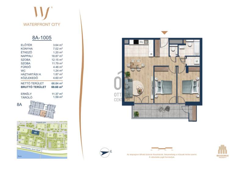 Projekt bemutatásaA projektrőlA Waterfront City egy új, modern városnegyed a 3. kerületben, ahol a természet közelsége és a városi kényelem tökéletes egyensúlyban van. A Duna-part közvetlen szomszédságában elhelyezkedő fejlesztés különleges atmoszférát kínál: a sétányt új épületek határolják, üzletekkel, kávézókkal és szolgáltatásokkal, amelyek élhető közösségi teret teremtenek.A 13 emeletes lakóépületből lenyűgöző örökpanoráma nyílik a budai hegyekre és a folyóra, a tágas teraszok pedig ideálisak a pihenéshez vagy a baráti összejövetelekhez. A zöldtetők, parkosított terek és fenntartható megoldások – mint az energiatakarékos rendszerek és okos otthon funkciók – mind hozzájárulnak a modern, környezettudatos életstílushoz.Látogass el értékesítési irodánkba, és tekintsd meg a városnegyed makettjét személyesen! Ismerd meg, milyen lesz az élet Budapest egyik legizgalmasabb új fejlesztésében!Óbuda szívébenKépzeld el, ahogy egy napsütéses délelőttön Óbuda szívében sétálsz, a Duna közelsége frissítően hat rád, miközben a Folyamőr utca, a Miklós tér és a Bogdáni út által határolt, öt hektáros területre érsz. A levegőben ott van a város történelme, mégis minden részletében a jövő hívogat.A 50 000 négyzetméteres területen egy hangulatos sétány vezet végig, amely egyenesen az óbudai Fő térre visz – mindössze 600 méterre. Ez a sétány nem csupán összeköt, hanem élményt nyújt: a Kolosy térről induló Óbudai Promenád részeként a város egyik legélhetőbb, legpezsgőbb szakaszán haladsz végig. És ha biciklivel érkeznél? A nemzetközi kerékpárút is itt halad el, Szentendre felé vezetve.Az 5. ütemben épülő 149 lakás mindegyike egyedi hangulatot kínál. Ahogy belépsz egy-egy otthonba, a hatalmas üvegfelületeken át beáradó fény és a tágas, szellős terek azonnal magukkal ragadnak. A kilátás? A Kaszap István park zöldje nyújt békét, míg a felsőbb emeletekről a Budai-hegység örökpanorámája tárul eléd – minden nap egy új festmény az ablakodban.A 6. ütemben 316 modern lakás épül, tágas teraszokkal és lenyűgöző kilátással a Dunára és a budai hegyekre. A lakók kényelmét őrszolgálat, kamerarendszer, mélygarázs, vendéglátóhelyek, belső park, játszótér és E-autó töltők szolgálják. Ez a projekt utolsó üteme, amely még közvetlen Duna-parti kapcsolattal rendelkezik.