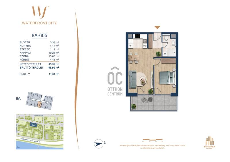 Projekt bemutatásaA projektrőlA Waterfront City egy új, modern városnegyed a 3. kerületben, ahol a természet közelsége és a városi kényelem tökéletes egyensúlyban van. A Duna-part közvetlen szomszédságában elhelyezkedő fejlesztés különleges atmoszférát kínál: a sétányt új épületek határolják, üzletekkel, kávézókkal és szolgáltatásokkal, amelyek élhető közösségi teret teremtenek.A 13 emeletes lakóépületből lenyűgöző örökpanoráma nyílik a budai hegyekre és a folyóra, a tágas teraszok pedig ideálisak a pihenéshez vagy a baráti összejövetelekhez. A zöldtetők, parkosított terek és fenntartható megoldások – mint az energiatakarékos rendszerek és okos otthon funkciók – mind hozzájárulnak a modern, környezettudatos életstílushoz.Látogass el értékesítési irodánkba, és tekintsd meg a városnegyed makettjét személyesen! Ismerd meg, milyen lesz az élet Budapest egyik legizgalmasabb új fejlesztésében!Óbuda szívébenKépzeld el, ahogy egy napsütéses délelőttön Óbuda szívében sétálsz, a Duna közelsége frissítően hat rád, miközben a Folyamőr utca, a Miklós tér és a Bogdáni út által határolt, öt hektáros területre érsz. A levegőben ott van a város történelme, mégis minden részletében a jövő hívogat.A 50 000 négyzetméteres területen egy hangulatos sétány vezet végig, amely egyenesen az óbudai Fő térre visz – mindössze 600 méterre. Ez a sétány nem csupán összeköt, hanem élményt nyújt: a Kolosy térről induló Óbudai Promenád részeként a város egyik legélhetőbb, legpezsgőbb szakaszán haladsz végig. És ha biciklivel érkeznél? A nemzetközi kerékpárút is itt halad el, Szentendre felé vezetve.Az 5. ütemben épülő 149 lakás mindegyike egyedi hangulatot kínál. Ahogy belépsz egy-egy otthonba, a hatalmas üvegfelületeken át beáradó fény és a tágas, szellős terek azonnal magukkal ragadnak. A kilátás? A Kaszap István park zöldje nyújt békét, míg a felsőbb emeletekről a Budai-hegység örökpanorámája tárul eléd – minden nap egy új festmény az ablakodban.A 6. ütemben 316 modern lakás épül, tágas teraszokkal és lenyűgöző kilátással a Dunára és a budai hegyekre. A lakók kényelmét őrszolgálat, kamerarendszer, mélygarázs, vendéglátóhelyek, belső park, játszótér és E-autó töltők szolgálják. Ez a projekt utolsó üteme, amely még közvetlen Duna-parti kapcsolattal rendelkezik.