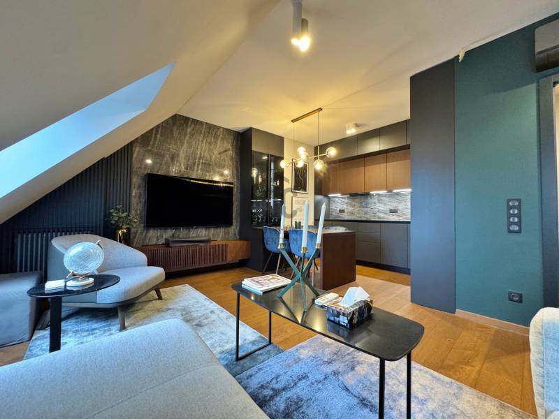 Eladó Budapest IX. kerületében, a Rehabilitációs területen, a Lenhossék utcában egy nettó 37 m²-es, tetőtéri, másfél szobás, teljes bútorzattal felszerelt lakás!A 2020-ban épült, modern társasház a régi épület felújított homlokzati elemeit megtartva készült, a Kerekerdő park közvetlen közelében.A lakás nettó 37 m² (összes alapterület 51 m²), kiváló elrendezéssel és világos terekkel. A tulajdonos magas minőségű burkolatokat, bútorokat és egyedi tervezésű dizájnelemeket építtetett be, így az ingatlan valóban prémium érzetet nyújt.A lakás teljes bútorzattal kerül átadásra, így azonnal költözhető, további beruházást nem igényel.Vásárolható a lakáshoz egy tároló 3,7 m2 ára: 3M.-Ft és egy gépkocsibeálló a mélygarázsban ára 9M.-Ft. Főbb jellemzők:Tetőtéri, másfél szobás kialakításTeljes bútorzattal eladóMagas minőségi burkolatok és bútorokIgényes, egyedi dizájn2020-ban épült társasházKlíma és egyedi mérésű házközponti fűtésKiváló állapot, azonnal költözhetőCsendes, biztonságos környékKiváló közlekedés: busz- és villamosmegállók néhány perc alatt elérhetőkÜzletek, éttermek, szolgáltatások a közelbenA környék folyamatos fejlődése miatt a lakás kiemelkedő befektetés, ugyanakkor első otthonnak is tökéletes választás.Amennyiben kérdése lenne, vagy szeretné megtekinteni személyesen is, kérem hívjon bizalommal, várom.Teljeskörű pénzügyi és jogi háttér-szolgáltatással várom kedves ügyfeleimet.