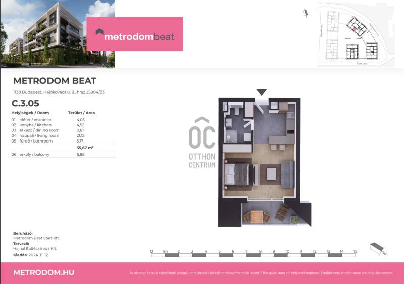 Az épületben saját medence és wellness vár Rád: medence, szaunavilág, sókabin, fitnessterem – úgy töltekezel, mintha minden nap egy hotelbe érkeznél haza.Ez a napfényes, 36 m2-es, nyugati tájolású, belső kertre néző lakás 2027 szeptemberében kerül átadásra a Marina-negyed szívében. A vételárból további 5% rozsdaövezeti kedvezmény igényelhető.* Üdv Itthon!LAKÁS – praktikus, jól élhető elrendezésA 36 m²-es otthon hálófülkés kialakítású, így a nappali és a pihenőrész kellemesen elkülönül. A tulajdonos egy elegáns üvegajtós megoldást tervezett a háló leválasztására, ami egyszerre modern és levegős, ugyanakkor jól elkülöníti a tereket — ezt az új tulajdonos igény szerint továbbviheti. A lakásban a burkolatválasztás még nem történt meg, így a vevő saját stílusára szabhatja a burkolatokat és szanitereket, ezzel valóban egyedi otthont alakítva ki. Az eredeti alaprajzon történt módosítás, a hálószobára üvegajtós megoldást terveztek. A módosított alaprajz is megtalálható a képek között.Felszereltség (az ár tartalmazza):- Padlófűtés + fan-coil hűtés: a két legkényelmesebb megoldás, amire mindenki vágyik – télen meleg, nyáron hűvös otthon vár.- Elektromos redőnyök- Érintős villanykapcsolók- Metrodom saját fejlesztésű Smart Home rendszer, amely saját applikációról vezérelhető (fűtés, hűtés, világítás, árnyékolás)Miért válaszd ezt a különleges otthont?- Saját medencéd és wellnessed van a házban: medence, szaunavilág, sókabin, fitnessterem – úgy töltekezel, mintha minden nap egy hotelbe érkeznél haza.- Minden parkoló töltővel: a lakópark teljesen elektromos-autó-baráttá lett tervezve, minden beálló töltésre előkészített.- Csendes, zöldre néző fekvés: a nyugati tájolás miatt egész délután napfényben úszik a lakás, miközben a gondozott belső kertre néz.- Tényleg jól használható elosztás: praktikus, jól élhető, modern kialakítás a Metrodomtól megszokott magas színvonalon. A LAKÓPARKA Metrodom Beat a Marina sétány, az Újpesti-öböl és az Árpád híd közelében épül, a XIII. kerület egyik leggyorsabban fejlődő, prémium városrészében. A kortárs művészeti hatású homlokzat nemcsak városképi különlegesség, hanem gazdag természetes fényt juttat az épületbe. A közösségi terek tágasak, fényárban úsznak, az elegáns lobby pedig igazi szállodai érzetet ad a hazaérkezéskor.A lakópark szolgáltatásai közül kiemelkedik:- két szintes, galériás wellness-központ (medence, szauna, sókabin),- fitness terem,- közösségi nappali,- coworking iroda,- napozó- és grillterasz,- mikromobilitási pontok,- csomagpont,- GreenGo szolgáltatás,- minden beálló elektromos töltővel rendelkezik,- saját okosotthon rendszer + alkalmazás,- 0–24 portaszolgálat.ÉPÍTÉS AKTUÁLIS STÁTUSZAA kivitelezés ütemterv szerint halad: a szerkezetépítés a 3–4. emeleten zajlik, közben a földszinti és 1. emeleti falazási munkák is folyamatosak. Készül a földszinti mennyezet hőszigetelése is, amely a jövőbeni energiahatékonyságot és kedvező üzemeltetési költségeket támogatja.KÖRNYÉK ÉS SZOLGÁLTATÁSOK -minden kéznél vanNéhány perc sétára található a Duna Pláza, amely a kerület egyik meghatározó bevásárlóközpontja — több mint 100 üzlettel, DM-mel, Rossmannal, Intersparral, éttermekkel, mozikomplexummal és számos kényelmi szolgáltatással. Minden a mindennapi ügyintézéstől a kényelmi vásárlásig egy helyen elérhető.A közeli Marina-part környékén kávézók, bisztrók és vízparti sétányok várnak, ideálisak egy reggeli kávéhoz vagy délutáni kikapcsolódáshoz. A környék kis üzletei, pékségei és szolgáltatói mind könnyen elérhetők, így a napi bevásárlás is gyorsan megoldható.KÖZLEKEDÉSA lakópark pár perc sétára található az M3-as metró Gyöngyös utcai megállójától, emellett számos buszjárat (105, 210, 15, 32, 30, 20E) biztosít gyors eljutást a város legfontosabb csomópontjaihoz. A környék teljes körűen támogatja a modern mobilitást: mikromobilitási pontok, Bubi, GreenGo és elektromos autótöltők is rendelkezésre állnak.Ne hagyd ki ezt az egyedi lehetőséget – hívj most, hiszen ilyen adottságú lakás már nem elérhető a fejlesztő kínálatában!(*Rozsdaövezeti kedvezmény: magyar magánszemély vásárlók a tulajdonjog bejegyzése után a vételár 5% ÁFA-t visszaigényelhetik.)----------------------------------------------Díjmentes, bankfüggetlen hiteltanácsadással támogatjuk vevő ügyfeleinket a számukra legelőnyösebb finanszírozási döntések meghozatalában. Opcionálisan igénybe vehető kiegészítő szolgáltatásainkkal – mint ügyvédi közreműködés, energetikai tanúsítvány vagy villamos biztonsági felülvizsgálat – teljes körű szakmai támogatást nyújtunk az adásvétel folyamatának minden egyes lépésénél.----------------------------------------------A hirdetésben szereplő információk tájékoztató jellegűek. A tévedés és az árváltoztatás jogát fenntartjuk. Az esetleges elírásokért és technikai hibákért felelősséget nem vállalunk.