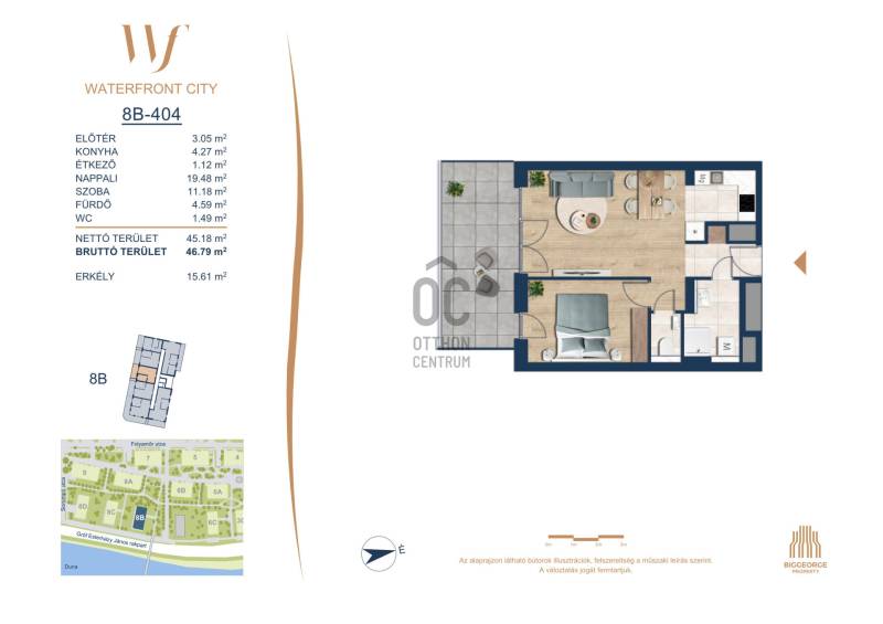 Projekt bemutatásaA projektrőlA Waterfront City egy új, modern városnegyed a 3. kerületben, ahol a természet közelsége és a városi kényelem tökéletes egyensúlyban van. A Duna-part közvetlen szomszédságában elhelyezkedő fejlesztés különleges atmoszférát kínál: a sétányt új épületek határolják, üzletekkel, kávézókkal és szolgáltatásokkal, amelyek élhető közösségi teret teremtenek.A 13 emeletes lakóépületből lenyűgöző örökpanoráma nyílik a budai hegyekre és a folyóra, a tágas teraszok pedig ideálisak a pihenéshez vagy a baráti összejövetelekhez. A zöldtetők, parkosított terek és fenntartható megoldások – mint az energiatakarékos rendszerek és okos otthon funkciók – mind hozzájárulnak a modern, környezettudatos életstílushoz.Látogass el értékesítési irodánkba, és tekintsd meg a városnegyed makettjét személyesen! Ismerd meg, milyen lesz az élet Budapest egyik legizgalmasabb új fejlesztésében!Óbuda szívébenKépzeld el, ahogy egy napsütéses délelőttön Óbuda szívében sétálsz, a Duna közelsége frissítően hat rád, miközben a Folyamőr utca, a Miklós tér és a Bogdáni út által határolt, öt hektáros területre érsz. A levegőben ott van a város történelme, mégis minden részletében a jövő hívogat.A 50 000 négyzetméteres területen egy hangulatos sétány vezet végig, amely egyenesen az óbudai Fő térre visz – mindössze 600 méterre. Ez a sétány nem csupán összeköt, hanem élményt nyújt: a Kolosy térről induló Óbudai Promenád részeként a város egyik legélhetőbb, legpezsgőbb szakaszán haladsz végig. És ha biciklivel érkeznél? A nemzetközi kerékpárút is itt halad el, Szentendre felé vezetve.Az 5. ütemben épülő 149 lakás mindegyike egyedi hangulatot kínál. Ahogy belépsz egy-egy otthonba, a hatalmas üvegfelületeken át beáradó fény és a tágas, szellős terek azonnal magukkal ragadnak. A kilátás? A Kaszap István park zöldje nyújt békét, míg a felsőbb emeletekről a Budai-hegység örökpanorámája tárul eléd – minden nap egy új festmény az ablakodban.A 6. ütemben 316 modern lakás épül, tágas teraszokkal és lenyűgöző kilátással a Dunára és a budai hegyekre. A lakók kényelmét őrszolgálat, kamerarendszer, mélygarázs, vendéglátóhelyek, belső park, játszótér és E-autó töltők szolgálják. Ez a projekt utolsó üteme, amely még közvetlen Duna-parti kapcsolattal rendelkezik.