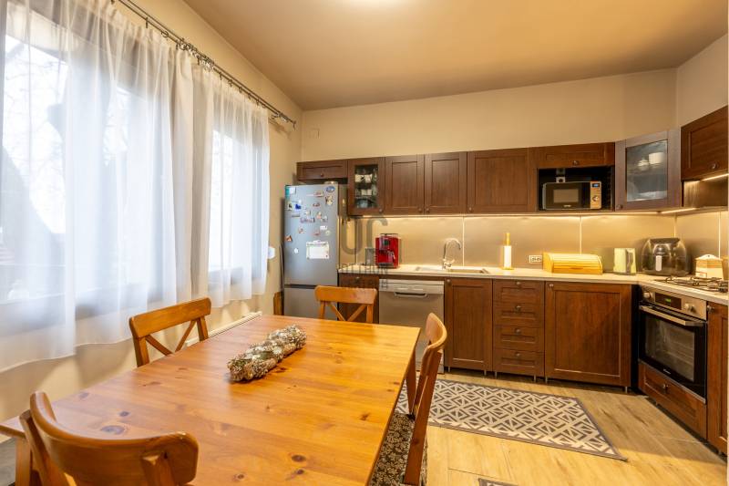 Nagy terekkel rendelkező, tágas otthon várja Önt Rákospalota kertvárosi részén, csendes utcában, jó környezetben. 70m2-es a földszint, nagy étkezős konyhával, nappalival, hálóval, kényelmes méretű fürdőszobával. A tetőtér is közel 60m2, ahol 3 szoba és egy fürdőszoba került kialakításra. 2 szobából léphetünk ki az erkélyre. A ház alatt 64m2-es, jó belmagasságú, száraz, többablakos pince, mely sok lehetőséget rejt magában. Kreativitás szerint, számos lehetőséget kínál. Kialakítható klubszoba, edzőterem, jakuzzi/szaunás wellnes részleg, csendes vállalkozás vagy akár egy új lakrész is. A kertben akár egy medence kiépítésére is van lehetőség, ehhez a rakott kút biztosítja a vizet.A terasz árnyékát egy jól termő vén diófa adja. A házhoz 40m2-es tároló is tartozik, mely használható műhelynek vagy igény szerint garázsnak átalakítható. Az ingatlan jó állapotú, több felújításon is átesett az elmúlt években. 2018-ban az alsó szint, vízcsövek, villanyvezetékek részleges cseréje. 2022-ben tető cseréplemezre cserélve. 2024-ben napelem került fel./10kw napelemrendszer került, 12kw inverter, 10kw energiatároló. /Tégla falazat 5cm perlit vakolat szigeteléssel. A fűtés elektromos panelekkel és fűtésre optimalizált klímákkal megoldott. Melegvizet gázzal működő, átfolyós vízmelegítő biztosítja. 3x20A és ipari áram is rendelkezése áll, elektromos autó otthon tölthető. Közlekedés szempontjából optimális helyen található. Budapest belvárosa fél óra alatt elérhető, éjszakai buszjáratok is vannak. Vásárlási lehetőségek tömkelege, a közelben Aldi, Lidl, Penny, Spar, kicsit távolabb a Pólus Center. Óvoda, bölcsőde, iskola, gyógyszertár, szakrendelők, minden elérhető közelségben. Jó szomszédság, rendezett, igényes környezett. Legye Ön az új boldog tulajdonos! Várom megtisztelő hívását.Ez az ingatlan a \"Felező csomag\" megbízási portfólióhoz tartozik. Részletek az Otthon Centrum weboldalán.