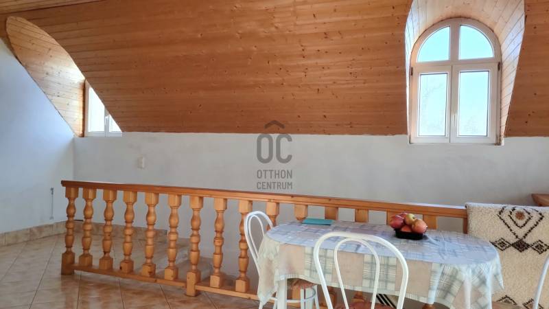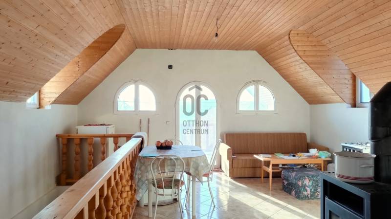 A Szent György-hegy az elmúlt években a Balaton-felvidék egyik legkeresettebb pontjává vált. Hegymagas kedvező fekvésének köszönhetően a környék csendje, a rendezett szőlősorok és a túraútvonalak közelsége egyszerre kínál nyugodt és aktív életmódot. A dűlőút végén fekvő telek már az érkezéskor is egyértelművé teszi, hogy itt a hegy természetes nyugalma a mindennapok része.Ezen a 2383 nm-es, gondozott, enyhén lejtős, szabályos négyszögalakú saroktelek alsó sarkán áll az 1998-ban a meglévő kőpincére téglából felépült ház. A napsugaras motívumú fa bejárati ajtók és a műanyag redőnyös ablakok egyszerre adnak karaktert és praktikumot az épületnek.Az egyik ajtó mögött a FÖLDSZINTI TÁROLÓHELYISÉG (12 m2) található, amelyből járólappal burkolt, részben csempézett 30 m2 nagyságú PINCE nyílik. A másik bejárati ajtón belépve márványlépcsősor vezet fel az EMELETre, ahol az AMERIKAI KONYHÁS NAPPALIba érkezünk. A tér megnyitása és a fény játéka miatt a 22 m2 nagyságú helyiség élénk és tágas, az ERKÉLYre (11m2) kilépve pedig kibontakozik az a részpanoráma, amely egyaránt mutatja a BALATON tükrét és a Keszthelyi-hegység vonulatait.KÉT HÁLÓSZOBA (10 m2, 11,5 m2) is helyet kapott ezen a szinten, mindkettő csendes, a hegy felé forduló hangulatú, valamint itt található a zuhanyzós FÜRDŐSZOBA is. A lépcsőház alatti térben további 2 kintről megközelíthető tárolóhelyiség kialakítására került sor.A ház műszaki adottságai rendezettek és praktikusak: vezetékes VÍZ és VILLANY áll rendelkezésre, a szennyvíz egy 7 m³-es, két tisztítónyílással ellátott DERÍTŐbe távozik. Az emeleti élettér fűtése jelenleg a nappaliban található KANDALLÓ segítségével megoldott, de a központi fűtés rendszere is kiépítésre került, így a későbbi korszerűsítés lehetősége adott.Az épület cseréphéjazata megbízható és időtálló látványt ad.A házban található belső ajtók cserére, a falak kifestésre várnak.Az ingatlan Hegymagas zártkerti részén fekszik, művelési ága: szőlő és gazdasági épület, út, így az adásvételi szerződést közzé kell tenni.Lokációja kiváló, autóval is minden évszakban könnyen megközelíthető.Ezt az ingatlant azok fogják igazán a magukénak érezni, akik keresik a természet közelségét, szeretik, ha otthonukból elindulva egy hosszabb túraösvény vagy egy csendes erdei út néhány perc alatt elérhetővé válik csakúgy, mint a település központja, boltja és a buszmegálló.Ideális választás lehet családoknak, akik nyaralót vagy hétvégi menedéket álmodnak a Balaton-felvidéken; természetkedvelőknek, akik értékelik a hegy csöndjét; vagy akár szálláshelyet kialakítani vágyóknak, akik a Szent György-hegyre érkező vendégeknek szeretnének egy különleges élményt nyújtani.Ha szeretné megtapasztalni a hegyoldal atmoszféráját, kérem, hívjon bizalommal, vagy jöjjön el és nézze meg személyesen a kedvező fekvésű ingatlant.