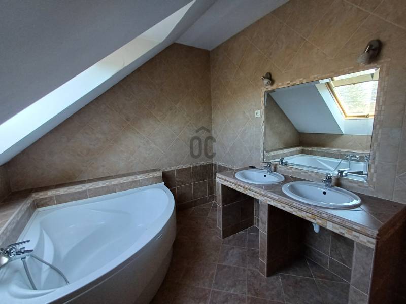 Nagykőrös városban a település délnyugati részén kertvárosias, jellemzően lakóházas beépítésű környéken kétlakásos ikerház akár lakásonként eladó.A telken egy 2010 környékén épült pince + földszint + tetőtér szintosztású ikerház áll. Beton sávalapon, tégla felmenő falazattal, vasbeton födémmel, faszerkezetű magastetővel, cserép héjazással. Homlokzata nemesvakolt. A 2 lakás külön – külön fűtéssel és melegvízellátással rendelkezik, melyeket gázkazánok biztosítanak. Hőleadás padlófűtés és radiátorok. Homlokzati nyílászárók műanyag szerkezetűek, hőszigetelő üvegezéssel ellátva, míg belső nyílászárói fa szerkezetűek. Helyiségek burkolatai a szobákban laminált parketta, többi helyiségben járólap. Falak festettek, vizes helységekben csempézettek. A lakások területe egyenként: 179 m2 + terasz:20,70 m2, Alsó szint: (teremgarázs) gépkocsi tároló , kamra, mosókonyha : hasznos terület: 80,78 m2, Földszint: előszoba, nappali, konyha, fürdőszoba : hasznos alapterület 59 m2 + terasz: 20,70 m2, Tetőtér: 3 szoba, fürdőszoba,WC, közlekedő, hasznos alapterülete: 39,21 m2. Megnevezés a tulajdoni lapon: Kivett 2 lakásos lakóház és udvarAz ingatlanra érvényes szabályozási terv: Lk-5, melynek előírásai: .•oldalhatáron álló beépítési mód•beépítettség legnagyobb mértéke: 35%•maximális építménymagasság: 4,5m Telek területe 879nmA kétlakásos lakóépület összes alapterülete: 357,94 m2( terasz: 41,40 m2)A kétlakásos lakóépület vételára: 90 Millió FtA lakások külön vételára: 45 Millió Ft
