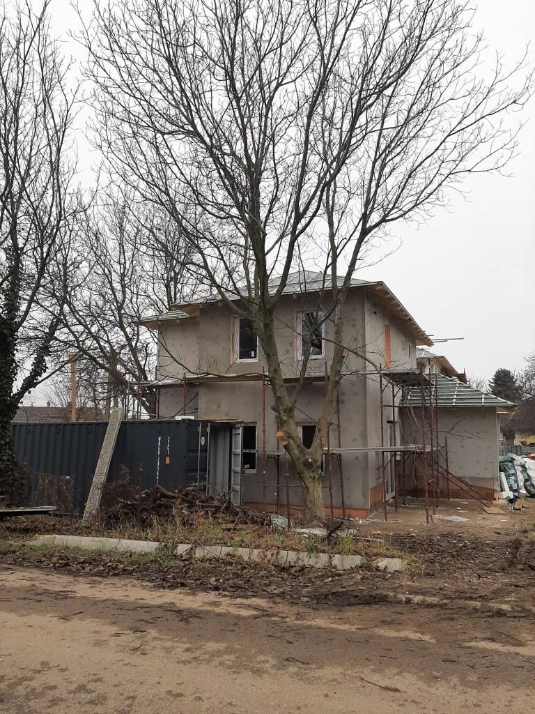 LEGYEN ÖN az ELSŐ, még TUD VÁLASZTANI a GARÁZZSAL ÉRINTKEZŐ, MOST ÉPÜLŐ \"A\" és \"B\" LAKÓHÁZAK közül!XXII. kerület Óhegy csendes kertvárosias környezetében, összesen 1000 m2-es telken 2 db, 130 m2-es 5 szobás, fürdőszobás nagy teraszos, garázzsal rendelkező \"A\" és \"B\" jelű házat kínálunk megvételre.Mindkét ház ALAPRAJZA, TELEK MÉRETE, KIVITELEZÉSE AZONOS !A megvételre kínált: \"A\" és \"B\" jelű ingatlan KULCSRAKÉSZ ÁRA: 189,9 millió FtAz ingatlanok saját 500 m2-es szeparált telek résszel, egyállásos garázzsal, térkövezett kocsibeállóval, külön mérőórákkal rendelkeznek.A két lakás két épület tömbben helyezkedik el.Az épületeket két garázs köti össze.Helyiségei:FÖLDSZINTEN: előszoba (5,7 m2), WC kézmosóval, nappali (31,25 m2), konyha-étkező (8,40 m2), vendégszoba (8 m2).EMELETEN közlekedő(9,3 m2), fürdőszoba(5 m2), 3 hálószoba (17,7 m2, 12,2 m2 és 8,5 m2 méretűek.)A MÉRETEKET, ELRENDEZÉST LÁSD AZ ALAPRAJZOKON !MŰSZAKI TARTALOM:-Porotherm 30-as falazat,15 cm külső homlokzati szigetelés-25 cm tetőszigetelés,12 cm lábazat xps szigetelés-két szint között E gerendás vasbeton födém-Leier beton cserép,csatorna rendszerrel-3 rétegű üvegezéssel ellátott, műanyag nyílászárók-elektromos alumínium redőnyök, szúnyoghálóval-minden helyiségben padló fűtés, helyiségenként szabályozható osztógyűrűvel-Hőszivattyú 10 KWh-Vízmelegítő hibrid 100 L-Villamos energia :1x32 A, 1x25 A H tarifás villanyóraÁtadás előtt, tereprendezésre kerül sor, építési törmelék elszállítása,talaj kiegyenlítés.TERVEZETT ÁTADÁS IDŐPONTJA : 2026. I. negyedévA HÁZAK ÖNÁLLÓ MÉRŐÓRÁKKAL, HASZNÁLATBAVÉTELI ENGEDÉLLYEL, TÁRSASHÁZ ALAPÍTÓ OKIRATTAL és H-TARIFÁS VILLANYÓRÁVAL kerülnek átadásra.A környék lokációja jó, közelben iskola, óvoda, orvosi rendelő, bevásárlási lehetőség található.Az ingatlan megtekintése előre egyeztetett időpontban lehetséges.VÁROM HÍVÁSÁT, TOVÁBBI KÉRDÉSEIVEL kapcsolatosan JELENTKEZÉSÉT!(G.I.)