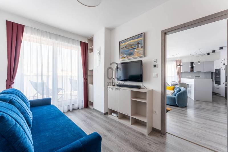 Minden nap ugyanaz a kérdés: miért nem költöztél ide előbb? Üdv itthon!RÖVID ÖSSZEFOGLALÓ Budapest XIII. kerületében, Angyalföld egyik legújabb fejlesztésében, a 2023-ban átadott Béke Residence-ben található ez a 70 m²-es, nappali + két hálós penthouse lakás, 44 m²-es, teljes hosszban futó terasszal és elvehetetlen panorámával a Budai Várra, a Normafára és a Szent László templomra.A 9. emeleti otthon teljesen bútorozott, tehermentes, mennyezeti hűtés–fűtés rendszerrel működik, és azonnal költözhető.A lakáshoz garázs és tároló tartozik, melyek együtt 15 M Ft-ért vásárolhatók meg.A közös költség 34 000 Ft.ELHELYEZKEDÉS – XIII. KERÜLET, BÉKE TÉRAngyalföld ezen része olyan környék, ahol elsőre feltűnik a rendezettség: széles utcák, sok fény, átlátható terek és egyfajta természetes könnyed ritmus, amibe gyorsan beleszeret az, aki itt él. Nem túl zsúfolt, nem túl zajos — inkább olyan, ahol a városi lét előnyei és az otthonos környezet közti egyensúly magától értetődő. A Rákos-patak sétánya pár perces távolságban indul, - mintha a városban nyílna egy rövid, zöld menekülőút: alkalmas egy gyors levegőzésre munka után, egy kis biciklizésre a gyerekekkel, vagy akár egy hétvégi kellemes sétához ebéd után. A Béke téri park és a Rokolya játszótér a helyiek számára biztos pont — ott mindig történik valami, gyerekzsivaj, mozgás, élet.Bevásárlásnál sem kell kompromisszumot kötni: a Lidl, Aldi, Spar, DM vagy Rossmann mind perceken belül elérhetők, a Lehel Csarnok pedig rövid autóúttal kapcsol a város egyik legjobb piacához. A Fáy utcai piac külön fejezet: szombatonként sajátos kerületi hangulat tölti meg, friss termelői áruk és ismerős arcok keverékével.A sportolási lehetőségek kifejezetten jók: a Vasas pályái, a Tichy Lajos Sportcentrum vagy a Kaffka Margit téri szabadtéri fitneszpark mind olyan helyek, amelyek megkönnyítik, hogy a mozgás ne hétvégi projekt legyen, hanem része maradjon a napi ritmusnak.Közlekedni egyszerű: a 14-es villamos két perc séta, és gyorsan összeköt a Váci úttal. A buszjáratok a Westend és a Nyugati felé visznek pár megálló alatt, a Lehel téri metró pedig rövid autóúttal elérhető. Innen elindulni és ide visszaérkezni is könnyű — talán ez az egyik legnagyobb előnye a Béke térnek, hogy minden úgy van közel, ahogy jólesik.AZ ÉPÜLET – MODERN, LETISZTULT, BIZTONSÁGOSA Béke Residence egy friss, modern épület: átgondolt közös terekkel, tágas liftekkel, jól kialakított garázsszinttel és kamerarendszerrel. A homlokzat letisztult, a lépcsőház világos, a lakóközösség igényes. Hangulatos, modern, rendezett ház, fiatalos és értéktartó — jó érzés megérkezni.ÚJ OTTHONOD BELSŐ VILÁGA Már az előszoba is jelzi, hogy itt minden részlet összehangolt. A szürke és kék árnyalatok visszafogott eleganciája végigkíséri az egész lakást, a mozgásérzékelős LED fények pedig diszkrét ritmust adnak a tereknek.A nappali a lakás legnyitottabb pontja: nagy üvegfelületein át folyamatosan érkezik a természetes fény, amely könnyed, levegős hangulatot ad a térnek.Napközben szinte észrevétlenül válik eggyé a lakás a terasszal; a két helyiség közötti átmenet olyan természetesen működik, mintha a külső és belső tér határai elmosódnának.Középen az Olaszországból érkezett pet-proof kanapé áll, első pillantásra is minőségi darab, használat közben pedig pontosan annyira kényelmes, amennyire várnád. Mellette az infinity bárszekrény és a borhűtő tesz hozzá egy visszafogott, mégis karakteres részletet; olyan funkcionális kiegészítők, amelyek idővel válnak az otthon kedvenc pontjaivá.A tárolókapacitás rendkívül erős: 30–40 pár cipő elhelyezésére alkalmas rendszer, ruhaliftes szekrények és több, padlótól plafonig futó beépített gardrób gondoskodik arról, hogy minden rendszerezve maradjon – ezek a megoldások a lakás praktikus oldalát hangsúlyozzák, és hosszú távon is hatalmas előnyt jelentenek. Letisztult, modern hangulat fogad a fürdőben: a nagyméretű szürke burkolatok nyugodt, rendezett hátteret adnak, a fehér szaniterek pedig tiszta kontrasztot teremtenek. A beépített kád kényelmes méretű, fölötte üvegfallal elválasztott zuhanykeret ad praktikus pluszt, így a helyiség két funkciót is gond nélkül kiszolgál.A mosdópult fekete felülete elegáns, a fali tárolók pedig elrejtik a mindennapi eszközöket, ettől marad a tér vizuálisan könnyű. Kényelmes részlet a törölközőszárítós radiátor, amely a hűvösebb napokon gyors melegedést biztosít, a szoba teljes ritmusa pedig olyan átgondolt, hogy könnyű benne elindítani vagy éppen lezárni a napot.A konyhában a TechniStone munkapult stabil, letisztult felülete adja a magabiztos alapot, amely jól bírja a mindennapi rutint. Beépített Bosch gépek dolgoznak csendesen és megbízhatóan, a konyha elrendezése pedig úgy lett kialakítva, hogy tényleg kézre álljon minden.A nappalira nyitott étkező természetes átmenetet képez a terek között; ez az a rész, ahol a napok ritmusában helyet kapnak a gyors reggelik, a nyugodtabb családi vacsorák és az elnyúló esti beszélgetések is.A lakás két hálója külön életet él, még ha nem is azonos mértékben szeparáltak. A terek elrendezése jól átgondolt: az egyik háló a központi nappali folytatása, a másik pedig ettől távolabb, a lakás csendesebb oldalán helyezkedik el. Ez a finom elválás biztosítja, hogy mindkét szoba valódi saját funkciót kaphasson.A nagyobb háló az otthon nyugodtabb, intim részén található. Pasztell árnyalatai miatt meleg és barátságos, a falra helyezett festmény pedig karaktert ad a térnek. A beépített, padlótól plafonig futó szekrények rendezett keretet