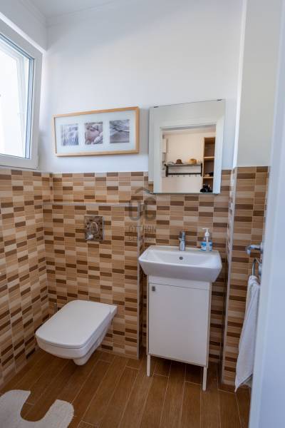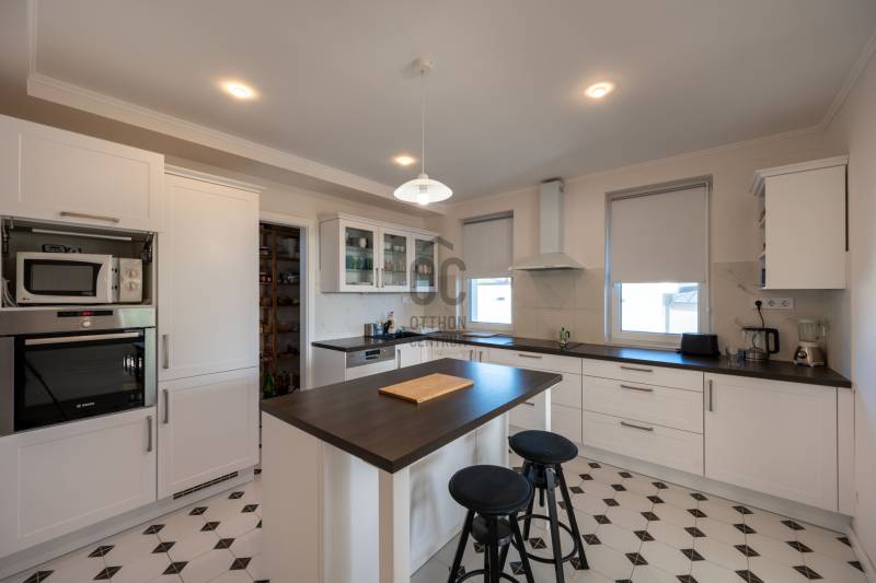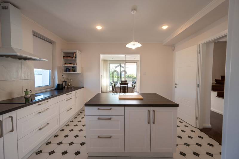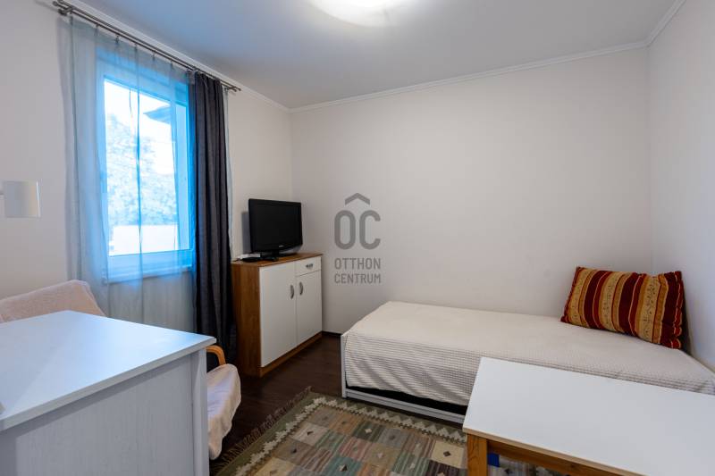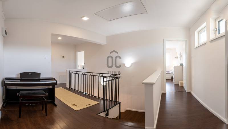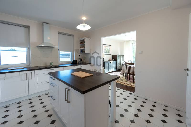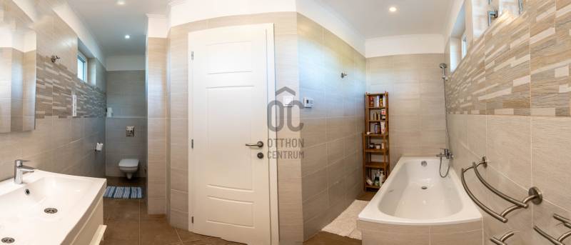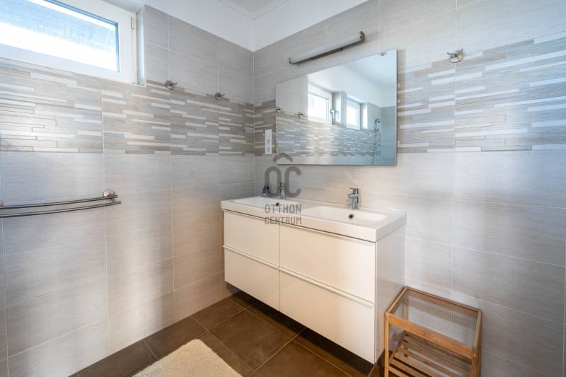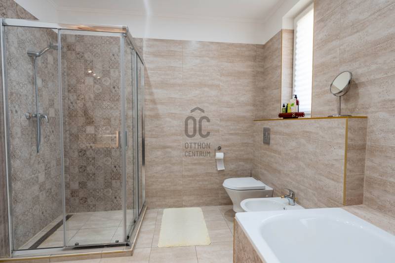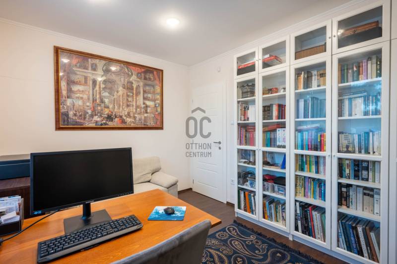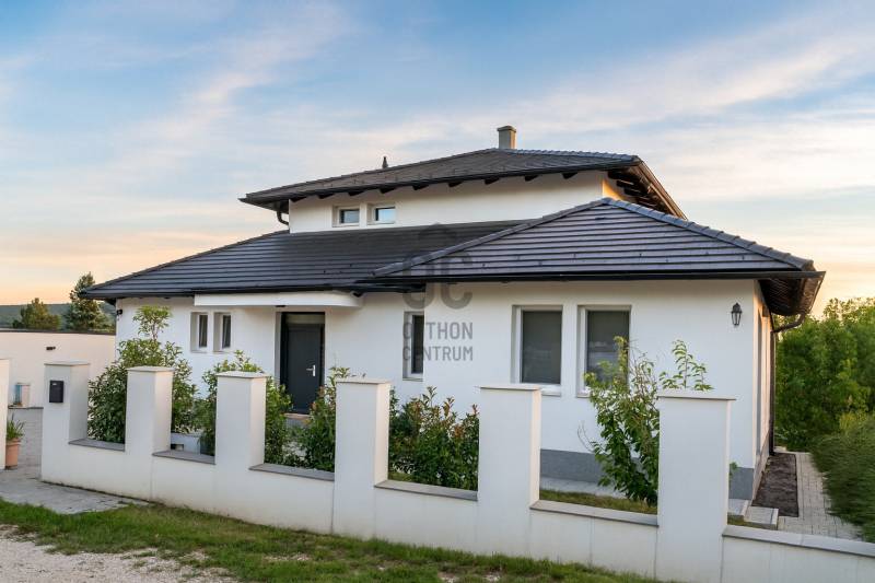 A Budai-hegység ölelésében, Nagykovácsi egyik legexkluzívabb, természetközeli részén, a Kültelek utcában kínálunk megvételre egy ritkaságszámba menő, 2018-ban épült, háromszintes, 8 szobás, panorámás családi rezidenciát. Az ingatlan egy intim, 1007 m²-es délnyugati fekvésű telken helyezkedik el, ahonnan lélegzetelállító kilátás nyílik a városi sziluettre és a környező zöld dombokra. A ház két utcáról is megközelíthető – az egyik oldalon aszfaltozott út, a másikon csupán 50 méteres, gondozott murvás szakasz vezet fel.A rezidencia tégla falazattal, gondosan megválogatott, időtálló építőanyagokkal és modern műszaki tartalommal készült. A padló- és radiátoros fűtésrendszerrel kombinált gázcirkó, valamint nagycsaládos igényeket is kiszolgáló vízmelegítővel. Az ingatlan kifogástalan állapotú, esztétikailag és műszakilag egyaránt prémium színvonalat képvisel.Letisztult elegancia három szinten – gondosan megtervezett élettérAlagsor – wellness és privát rekreációraA ház alsó szintje a kikapcsolódásnak és a praktikumoknak szentelt:- Prémium szauna külön zuhanyzóval- Pihenésre alkalmas lakótér (25 m²), akár vendégszobaként, akár edzőhelyként- Tágas raktár (20 m²), igényes gépészeti helyiség- Közvetlen kapcsolat a 27 m²-es terasszal, ahonnan a kert nyugalma tárul fel.- Ez a szint tökéletesen működik privát wellnessrészlegként vagy önálló vendéglakrészként.Földszint – a rezidencia reprezentatív központja.A földszinten a nagyvonalú terek, a fény és a panoráma dominálnak:- Fényárban úszó nappali közvetlen teraszkijárattal- Tágas étkező és modern, praktikusan kialakított konyha kamrával- Különálló vendégszoba és vendégmosdó- Privát hálószoba saját gardróbbal és fürdőszobával- Külön dolgozószoba, amely otthoni irodának vagy könyvtárnak is ideális- A ház egyik legszebb eleme a 38 m²-es panorámás terasz, amely a nappali és az étkező együttes meghosszabbítása – tökéletes helyszín reggeli kávéhoz vagy esti borozáshoz- A földszint eleganciája és funkcionalitása egyaránt a modern családi életet szolgálja.Emelet – privát lakosztály a nyugalom jegyébenA felső szint a ház privát, pihenésre kialakított szférája:- Két impozáns méretű hálószoba- Stílusos, külön fürdőszoba- 12 m²-es erkély, amely a hálókból közvetlenül elérhető és páratlan panorámát biztosít- Ez a szint külön lakrésznek is tökéletes, ideális szülői lakosztálynak vagy idősebb gyermekek számára.Ahol a természet és a luxus harmonizál:1000 m²-es, intim, délnyugati fekvésű kert állandó napsütést, teljes privát szférát és kivételes panorámát kínál. A telken két nyitott gépkocsi-beálló biztosítja a kényelmes parkolást.Nagykovácsi a főváros egyik legértékesebb agglomerációs települése:- magas életminőséggel, kiváló levegővel, világszínvonalú oktatási intézményekkel (köztük az Amerikai Nemzetközi Iskolával), közvetlenül a Budai Tájvédelmi Körzet szomszédságában.- Nagykovácsi ötvözi a természet közelségét a modern, családbarát infrastruktúrával.Ez az ingatlan nem csupán egy ház – inkább egy életérzés!Foglaljon időpontot telefonon a megtekintésre – engedje, hogy ez a különleges rezidencia személyesen is elvarázsolja.Hitelezési Szakértőnk egyetlen lépésben bemutatja Önnek az összes pénzintézet ajánlatát - így elkerülheti a hosszadalmas és felesleges banki látogatásokat – gyorsan, hatékonyan és a legjobb döntést biztosítva Önnek.Ez az ingatlan a \"Felező csomag\" megbízási portfólióhoz tartozik. Részletek az Otthon Centrum weboldalán.